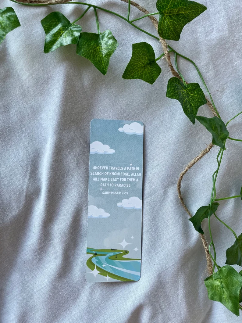 Enhance your reading experience with our unique Islamic bookmark. Designed with care, it serves as a reminder of faith. Slim and durable, it securely holds its place in your Qur'an or any book. Perfect as a gift or for personal use.