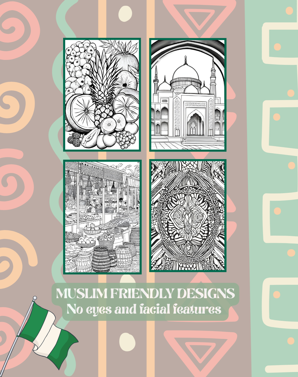 Celebrate creativity, mindfulness, and learning with this beautifully crafted Nigeria Colouring Book. Designed for all ages and abilities, it’s the perfect way to explore a vibrant culture while respecting Islamic values!