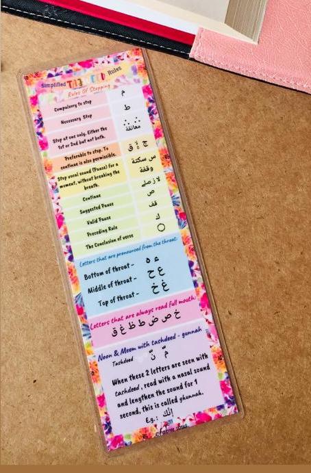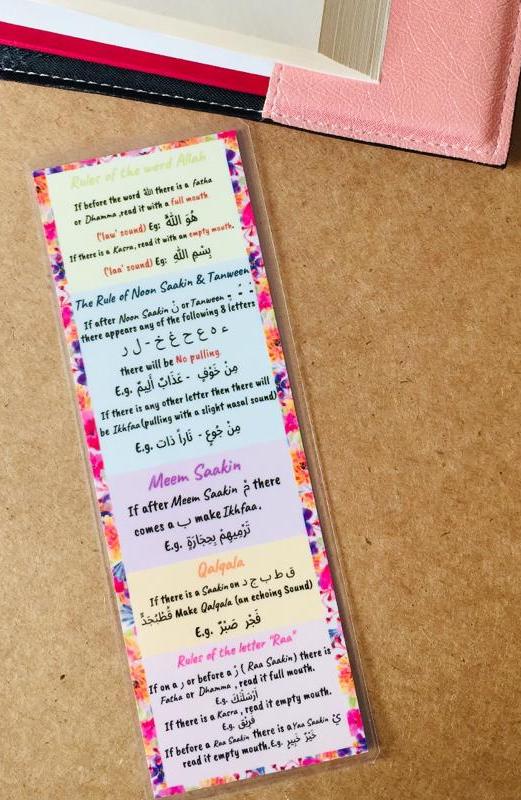This tajweed reminder bookmark is sure to be your companion on this reward filled journey in shaa Allah.