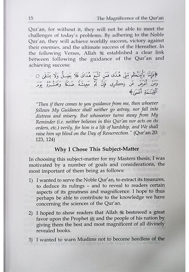 "The Magnificence of the Qur’an" is a book that relates to us the countless miracles and benefits of the Holy Book of Islam. It expands on numerous aspects of the Quran, all of which point to its magnificence, as signified by the apt title. The author discusses everything from the methodology of studying the Qur’an to its characteristics, qualities, and manners with which one should approach it. It is much like a user’s manual that opens up a world of knowledge and facts about the Qur’an. For all audiences, this book is an invaluable companion to the Qur’an and one which serves to remind us of its eminence and its superiority to all other books. By discussing a series of seemingly miscellaneous topics, the author manages to create a whole picture of the Qur’an which surpasses any other guide of this academic nature.