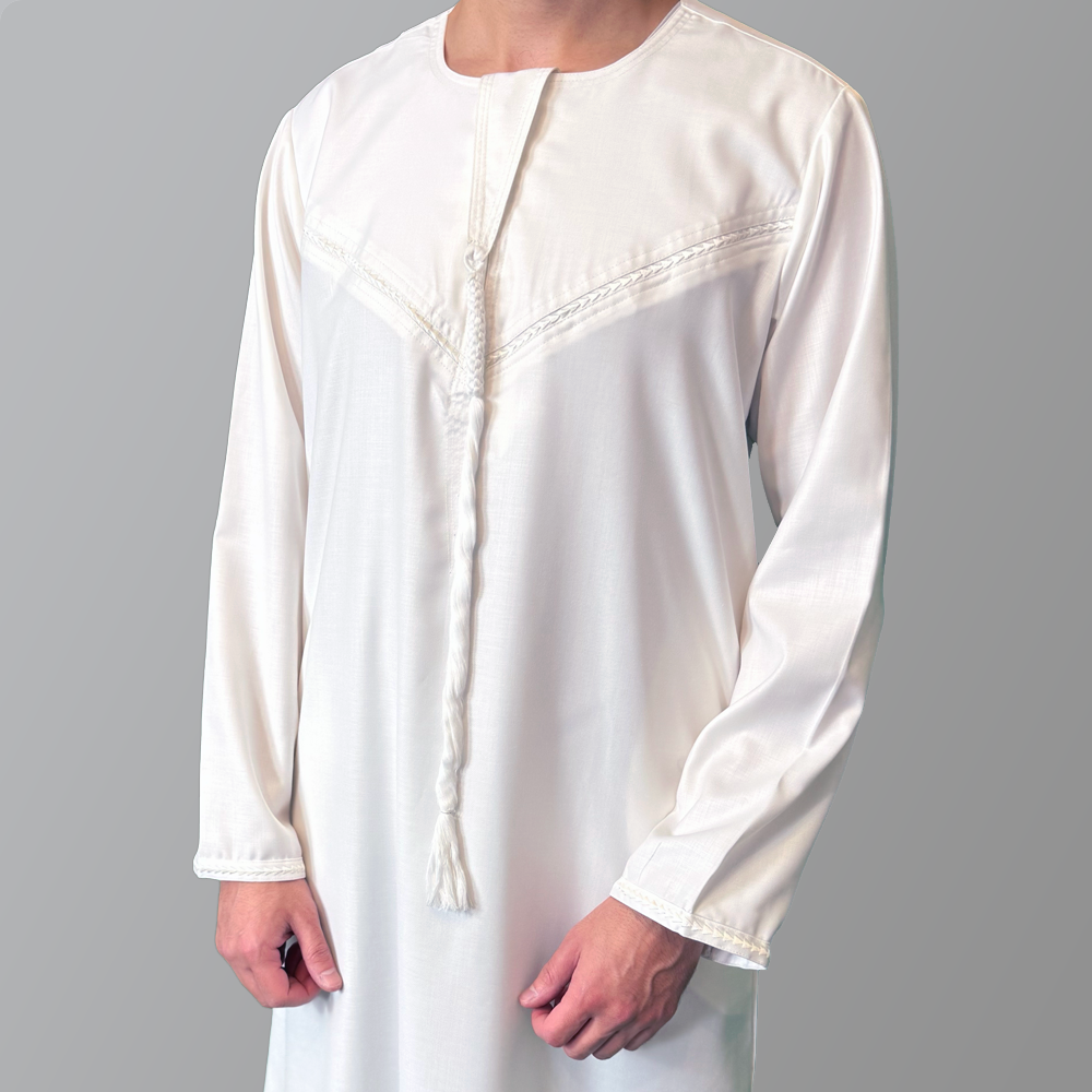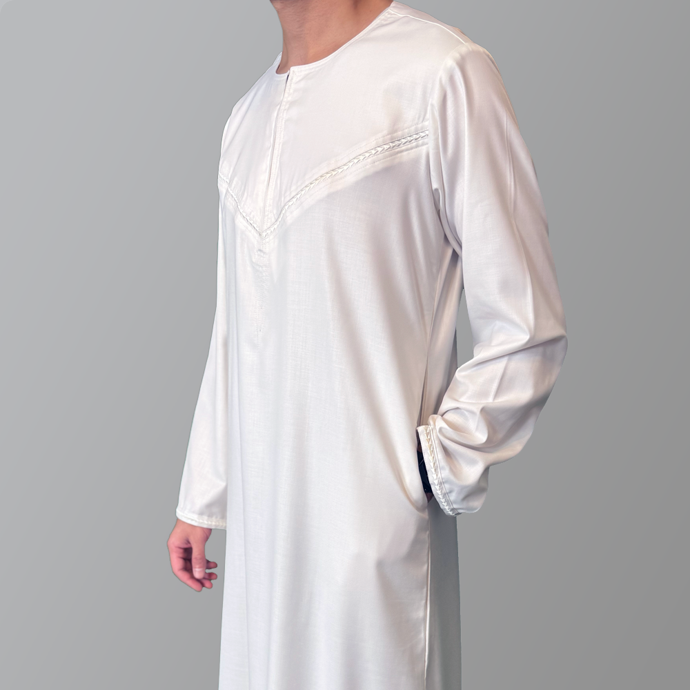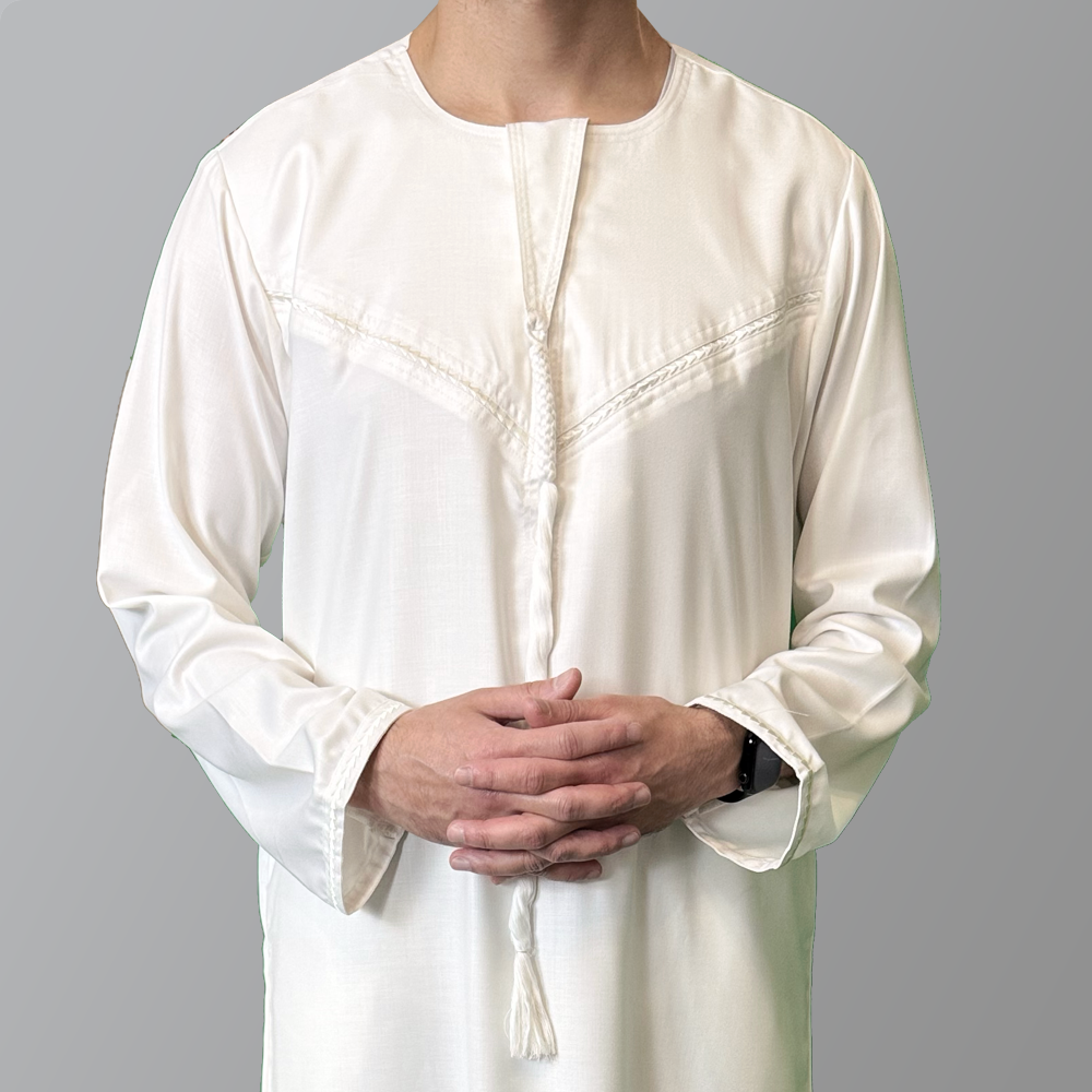 This Thobe captures the spirit of simplicity, mobility, and practicality, reflecting the everyday wearability of the Thobe. This garment is both rooted in tradition and suited for modern, active lifestyles, much like the nomadic way of life that has shaped Emirati culture.