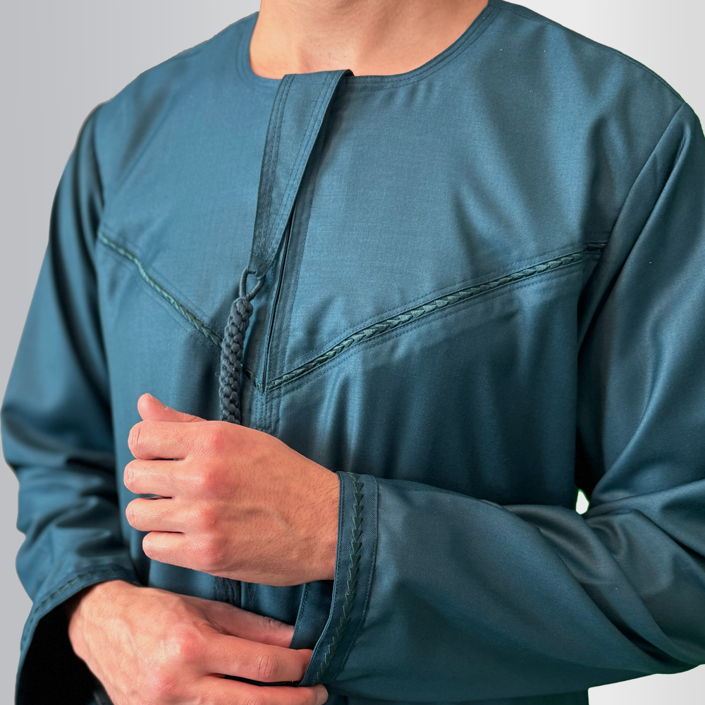 This Thobe captures the spirit of simplicity, mobility, and practicality, reflecting the everyday wearability of the Thobe. This garment is both rooted in tradition and suited for modern, active lifestyles, much like the nomadic way of life that has shaped Emirati culture.