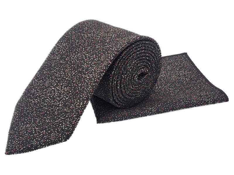 A unique suit accessory set by SI. This brown and maroon polka dot tie with a matching pocket square will add character to your formal attire perfect for any occasion and season. Also available in other colours.