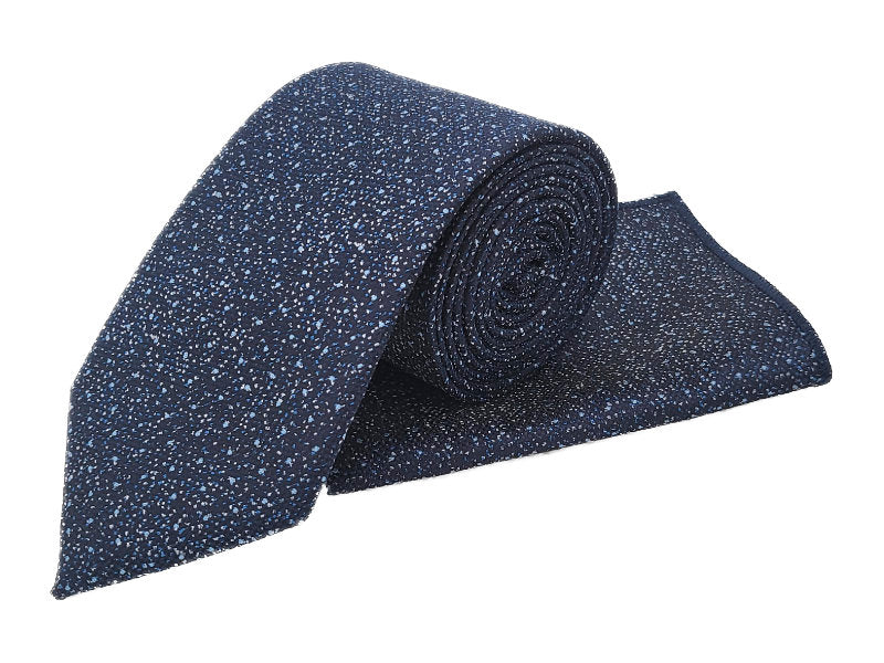 A unique suit accessory set by SI. This cobalt blue and sky blue polka dot tie with a matching pocket square will add character to your formal attire perfect for any occasion and season. Also available in other colours.
