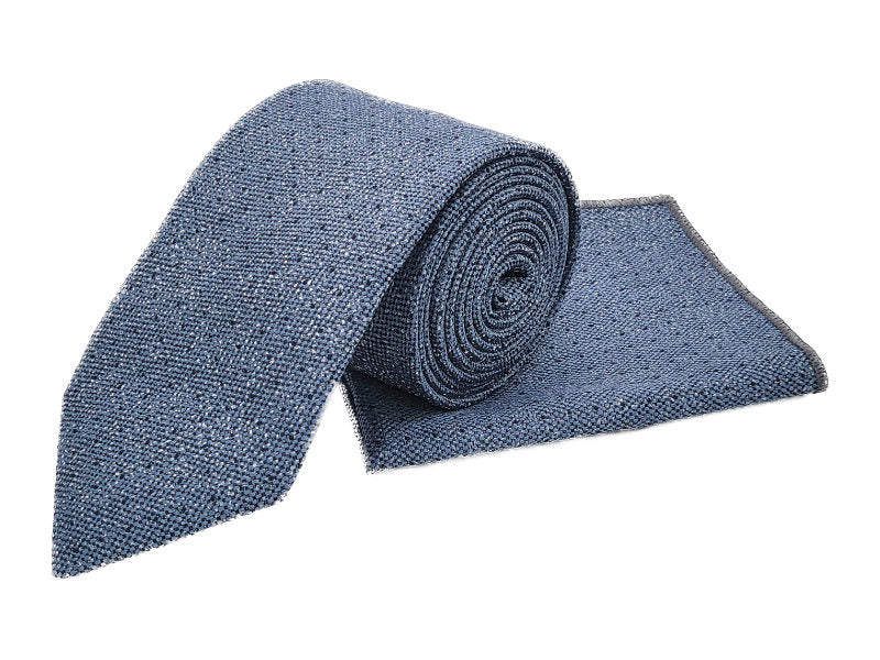A unique suit accessory set by SI. This sky blue and navy polka dot tie with a matching pocket square will add character to your formal attire perfect for any occasion and season. Also available in other colours.