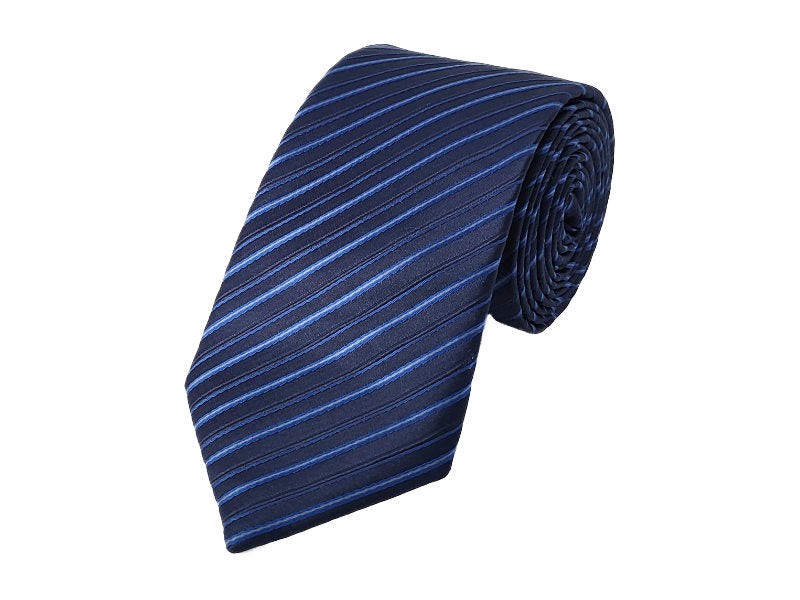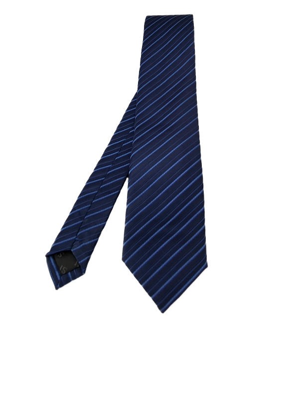 A modern twist on a classic design by SI. This blue and navy diagonal-striped tie will add class to your formal attire. Also available in other colours.