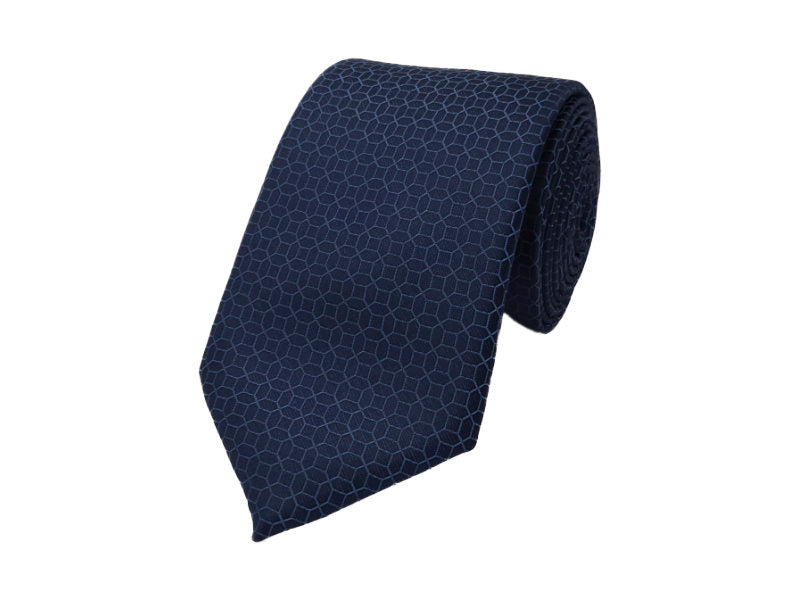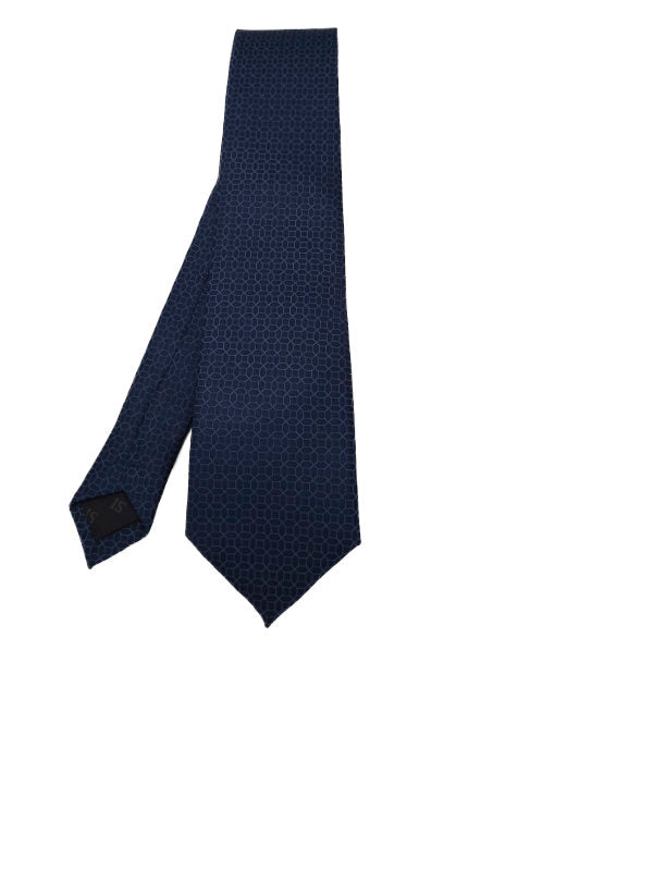 A geometric design by SI. This blue denim-toned tie with a sky blue outline will add flair to your outfit. Also available in other colours.