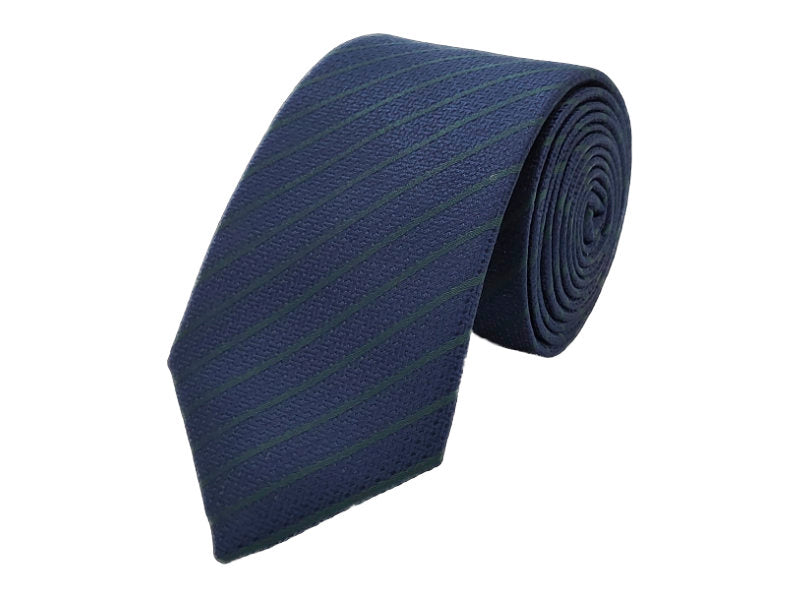 A classic design by SI. This navy textured background with forest green stripes will add flair and personality to your formal attire. Also available in other colours.