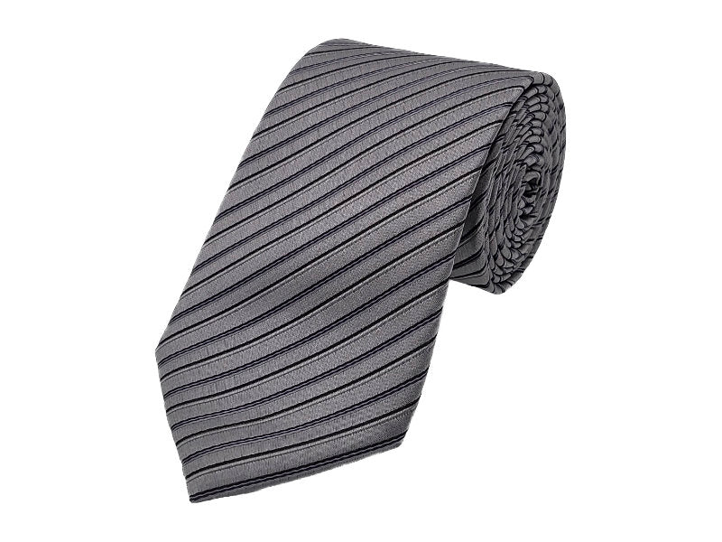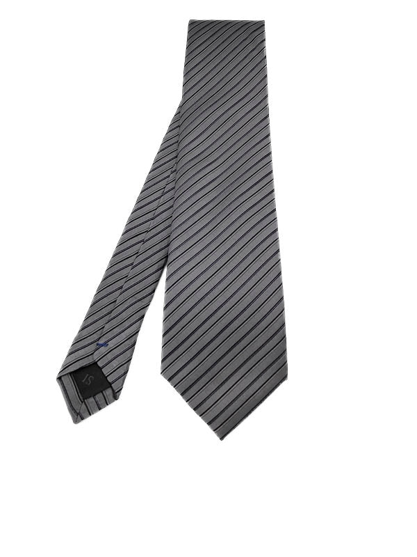 A modern twist on a classic design by SI. This grey and black diagonal-striped tie will add elegance to your formal attire. Also available in other colours.