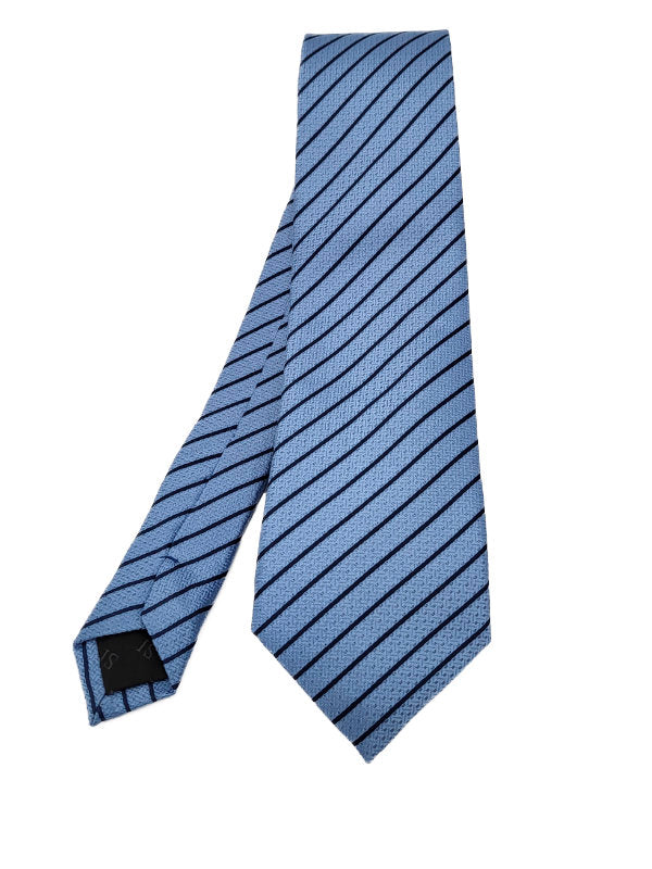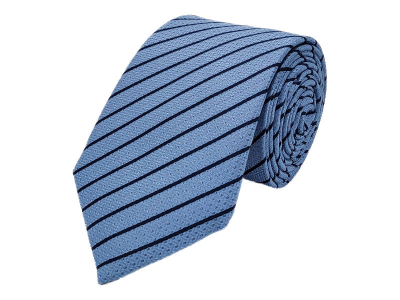 A classic design by SI. This sky blue textured background with navy stripes will add sophistication to your formal attire. Also available in other colours.