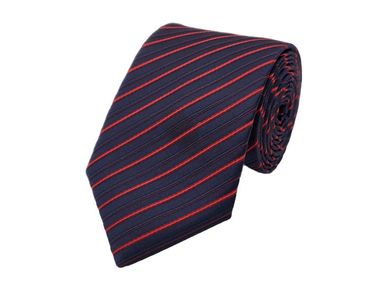A modern twist on a classic design by SI. This red and navy diagonal-striped tie will inject character to your formal attire. Also available in other colours.