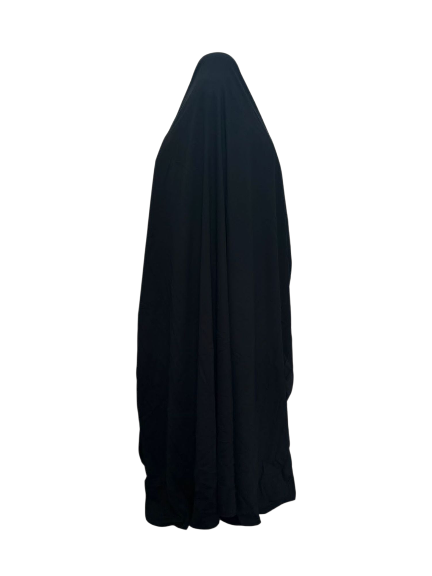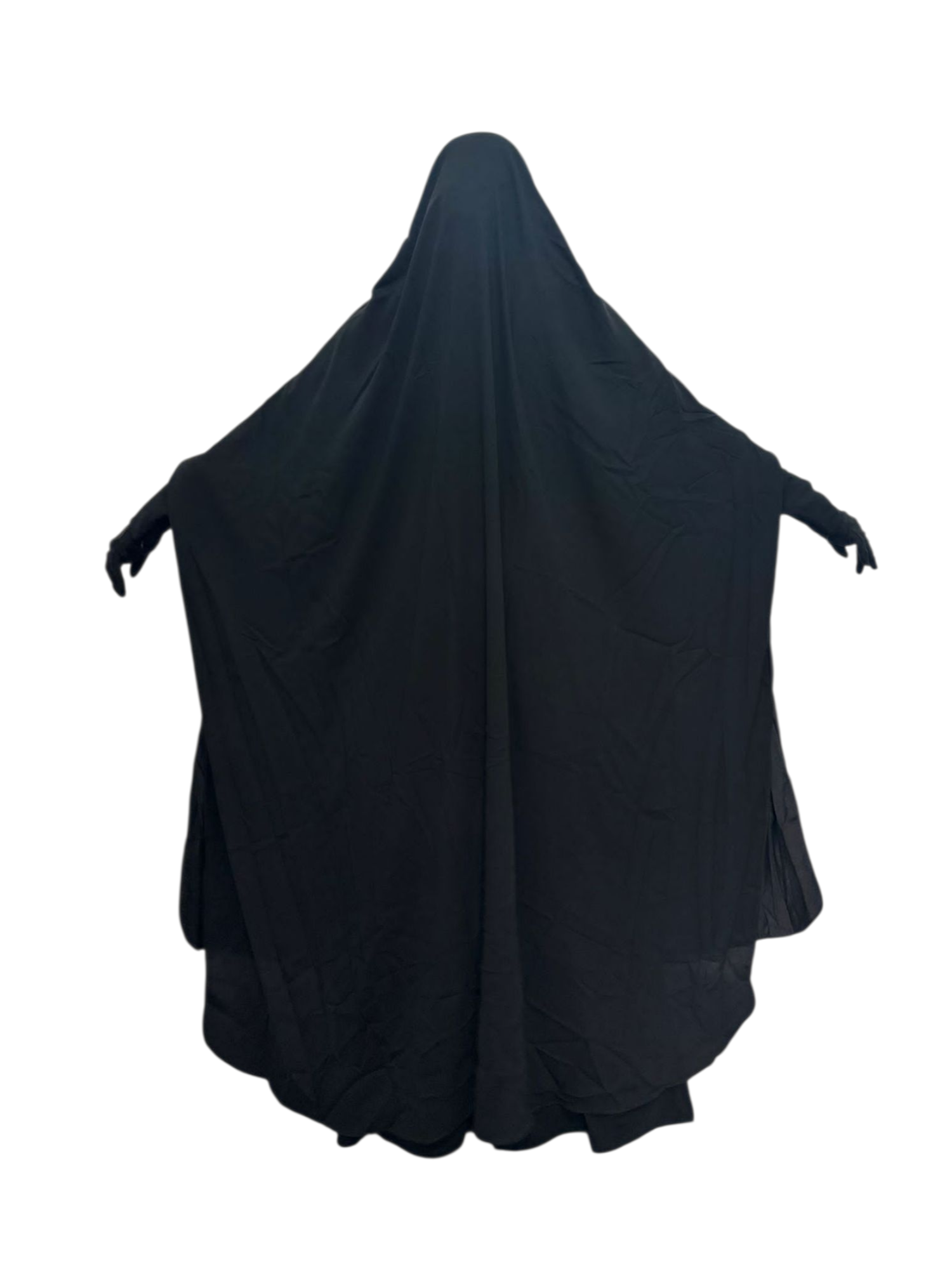 The abaya is extremely beautiful and long. I got size 60’ and usually even those sizes can be short on a women who is nearly 5’11. But, this is abaya is unique. The fabric is stretchy and the string allows the abaya have pretty butterfly shape, however it is slightly thin so can see through it in certain conditions. But, it’s perfect for hot summer days. It also comes with a matching scarf which I wasn’t aware of.