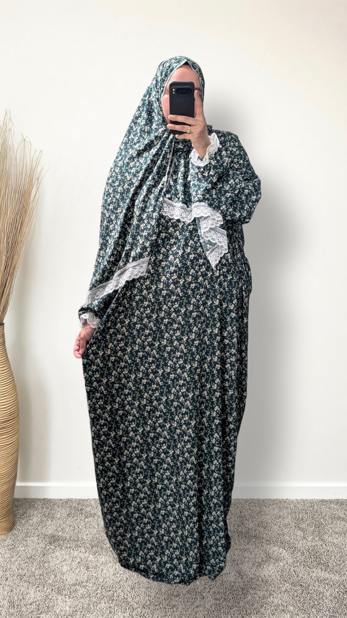 83cm - Width of dress : This refers to one side of the dress when laid flat, making the full circumference approximately 166cm. The dress is intentionally designed to be wide and oversized for a modest, full-coverage fit.