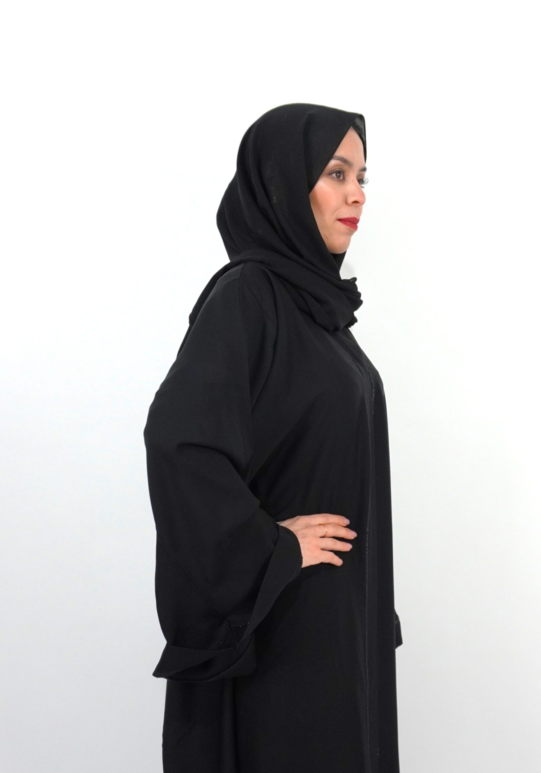Designed for versatility, this abaya can be worn open or closed with its button closure, making it a perfect addition to your modest fashion wardrobe for both casual and formal occasions.