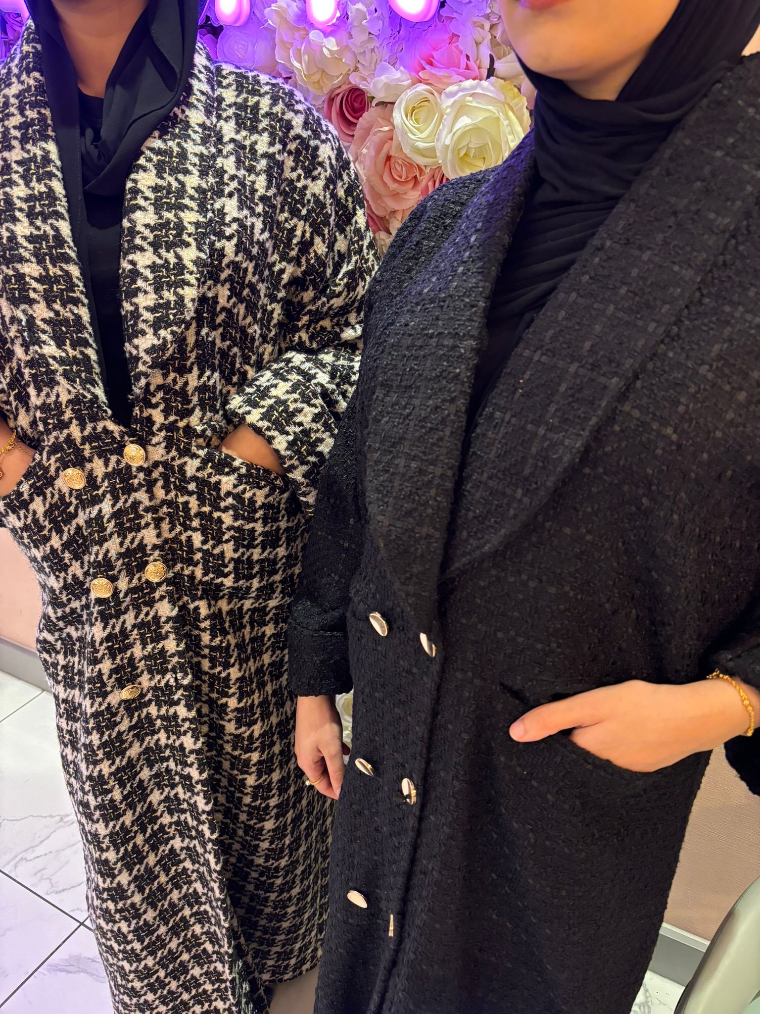 Premium quality abaya coat, 2 pockets and gold buttons.