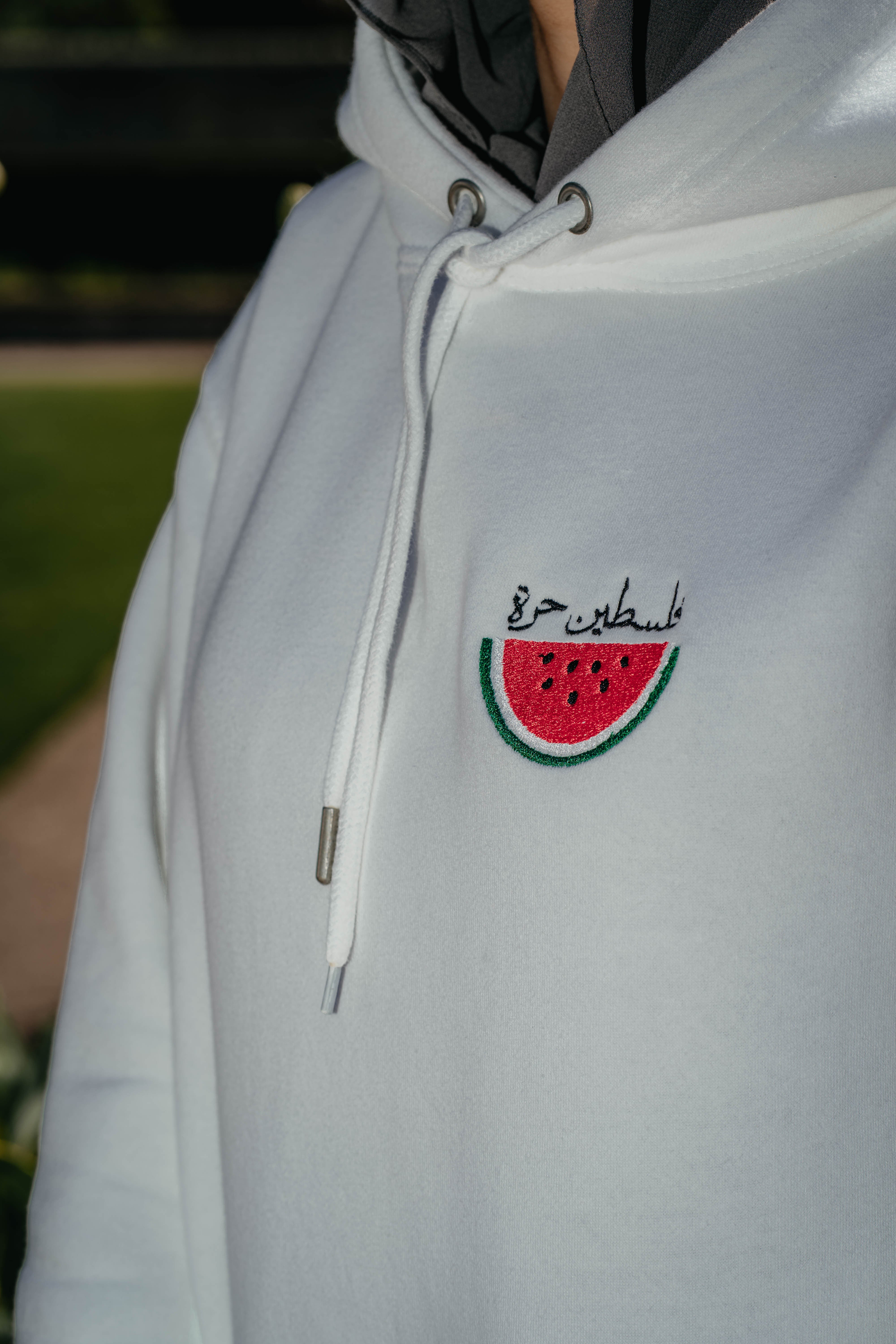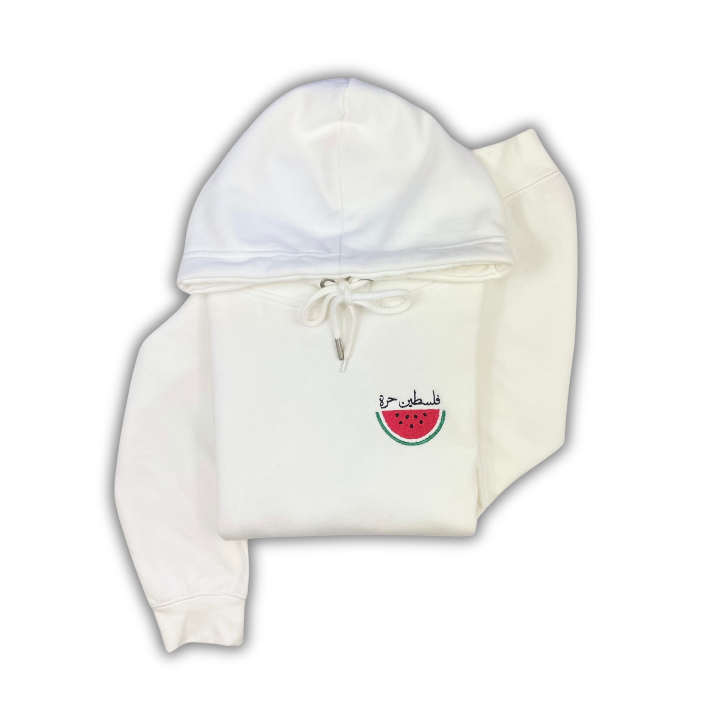 This hoodie features a unique design, with the green, white, red, and black threads beautifully stitched to evoke the symbolism of the watermelon—a subtle yet powerful way to show your solidarity.