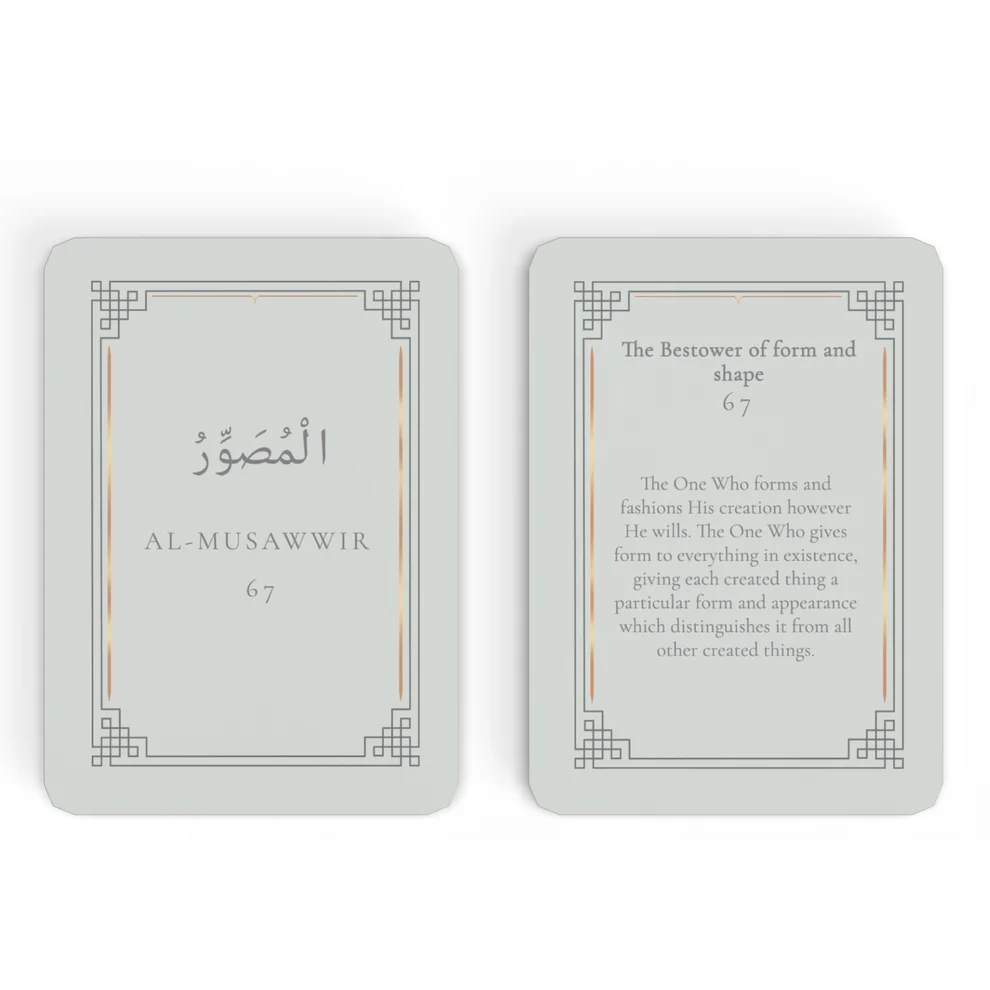 - A deck of 33 cards, each displaying one of Allah's names.