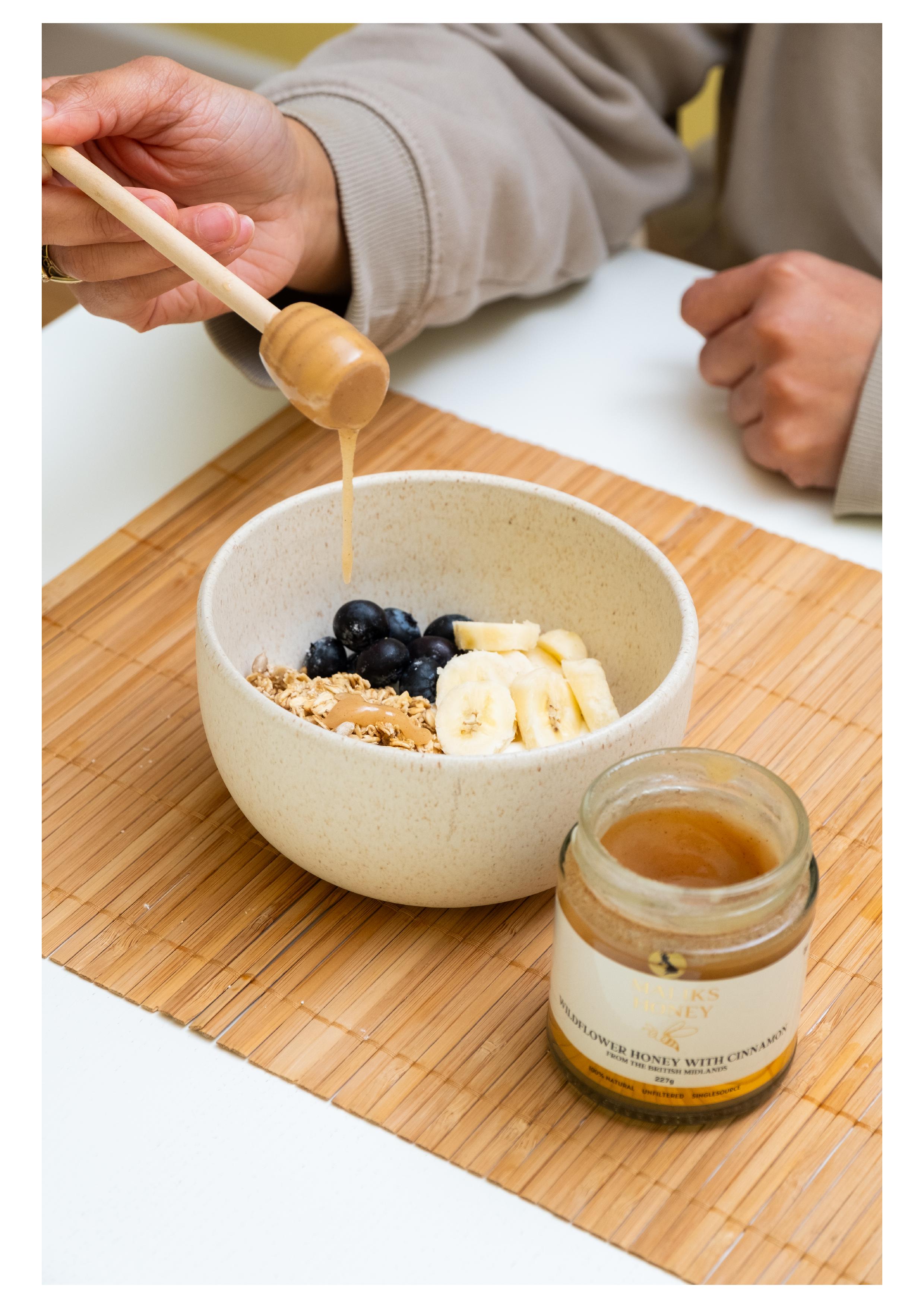 Beekeeper Paul takes pride in harvesting honey from local hives, ensuring a connection to the natural beauty of the British countryside. This cinnamon-infused creation reflects a commitment to sustainability, quality, and the timeless appeal of raw honey.