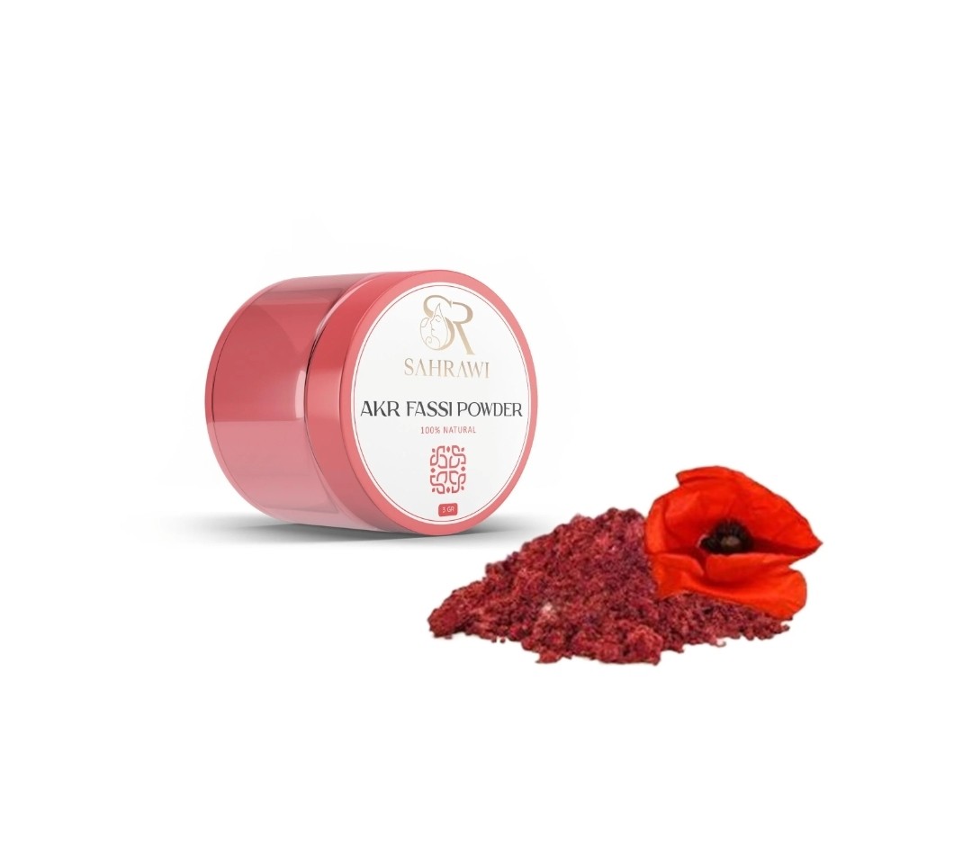 Discover the power of Aker Fassi, a luxurious and versatile beauty product revered for centuries in Moroccan culture. Made from 100% natural ingredients, including vibrant poppy flowers and antioxidant-rich pomegranate extract, this unique powder enhances your beauty routine while nourishing your skin, lips, and hair