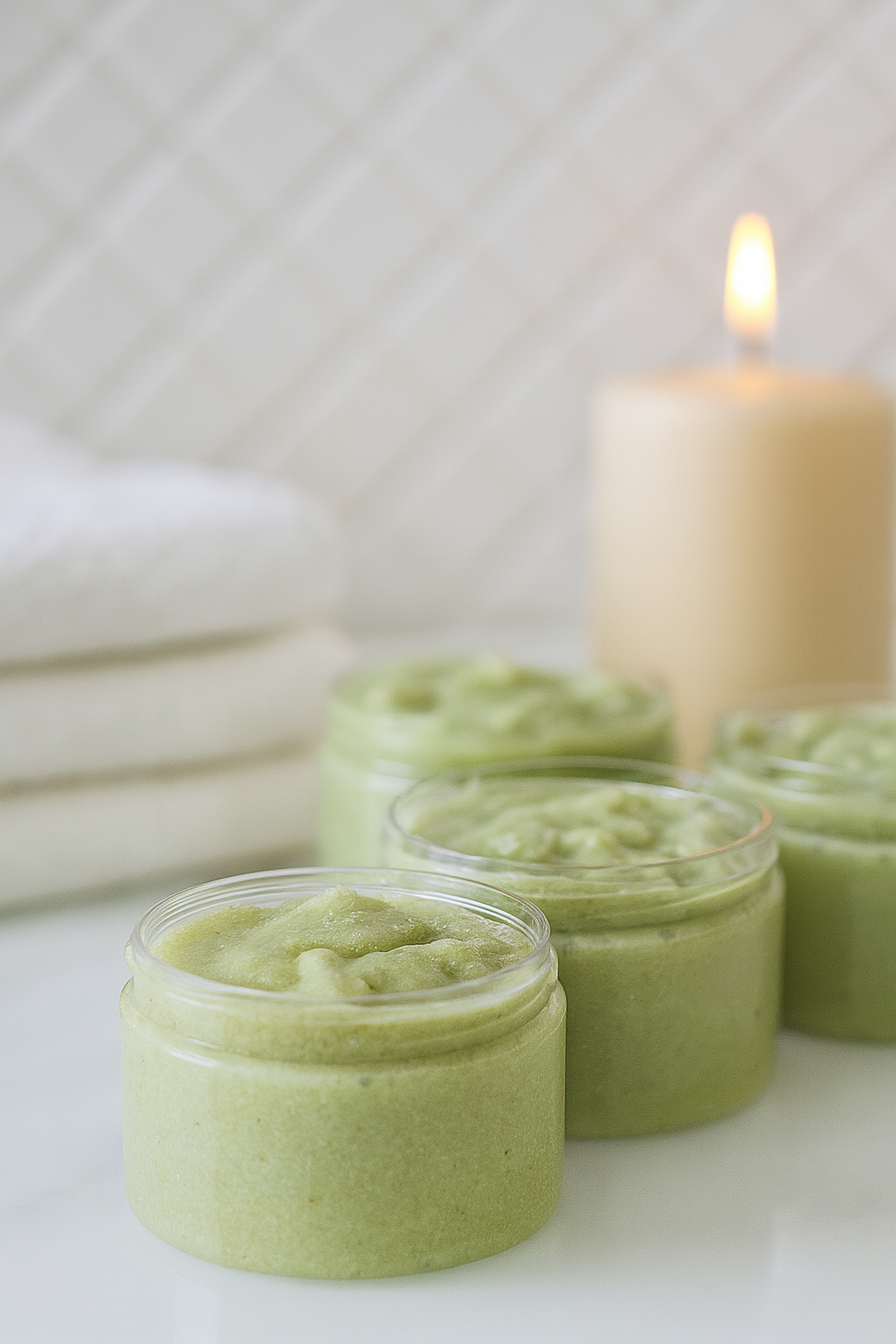 Treat your feet to a rejuvenating spa experience in a jar. This scrub gently buffs away roughness while deeply nourishing the skin, leaving your feet soft, refreshed, and pampered.