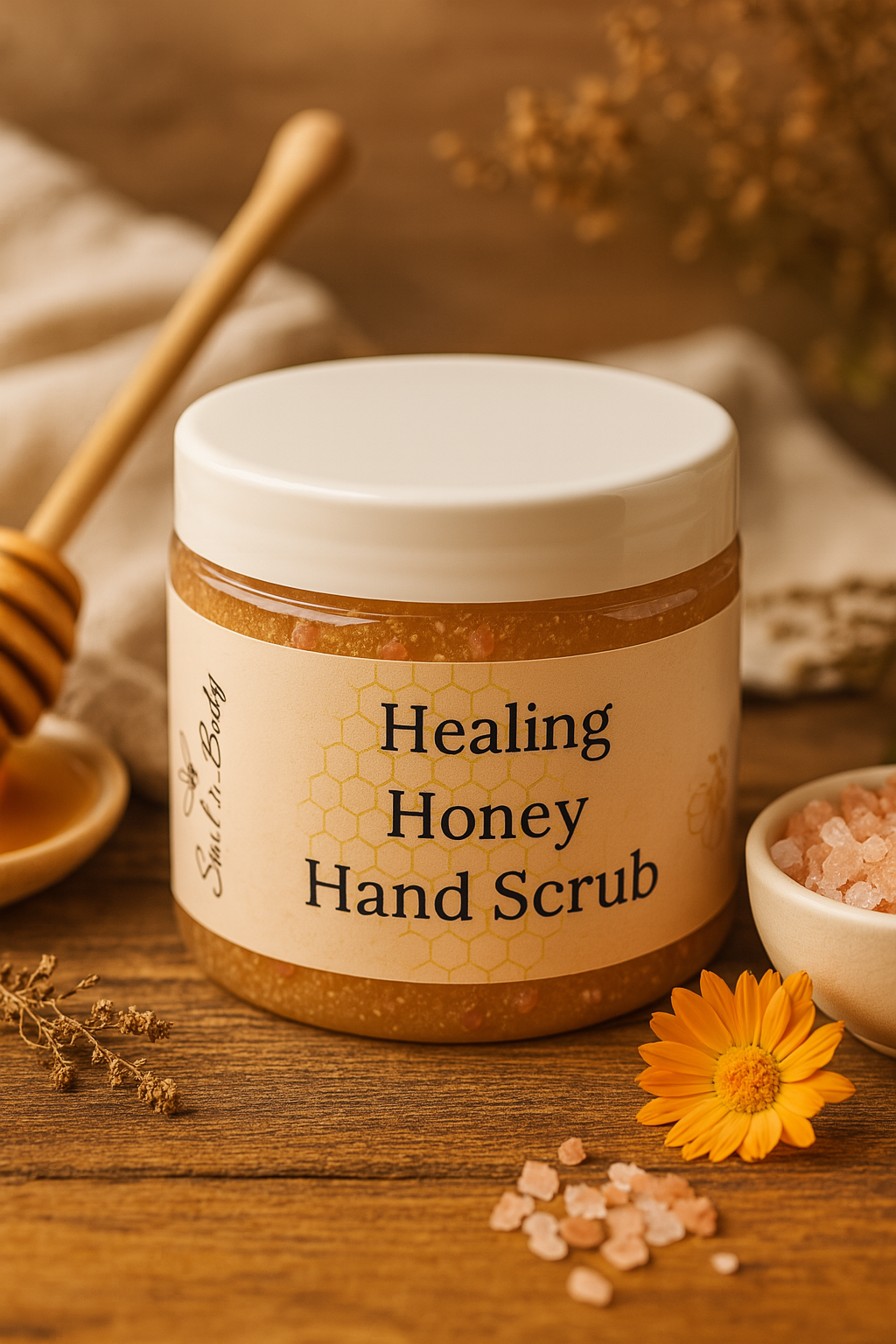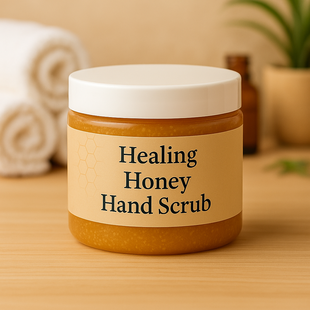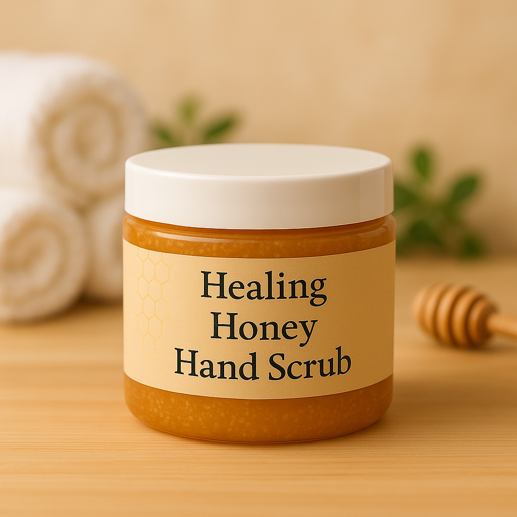 Soothe, soften, and renew dry, tired hands with our Healing Honey Hand Scrub.