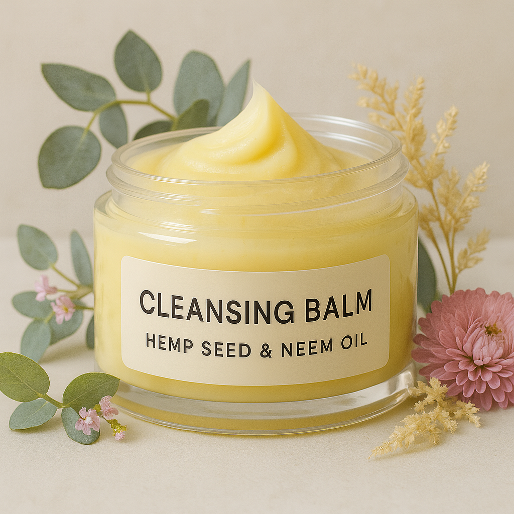 Treat your skin to a luxurious cleansing ritual with this pure Hempseed & Neem Cleansing Balm. Handcrafted in small batches, our balm melts away makeup and impurities without stripping moisture. Lightweight hempseed oil is rich in essential fatty acids that maintain your skin’s natural balance and hydration. Deeply nourishing neem oil delivers antioxidants and fatty acids that purify and calm the complexion.