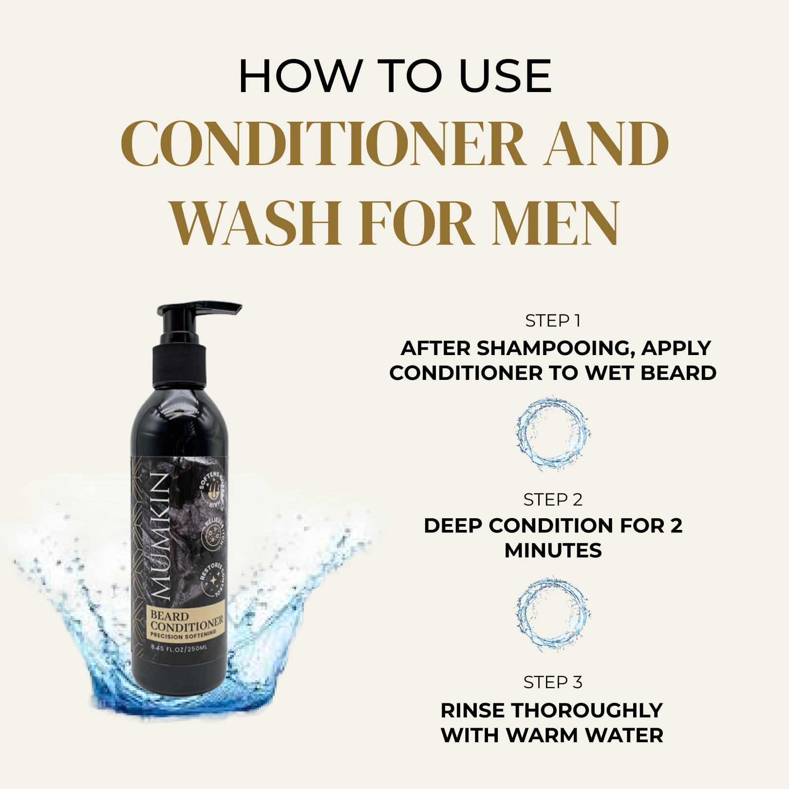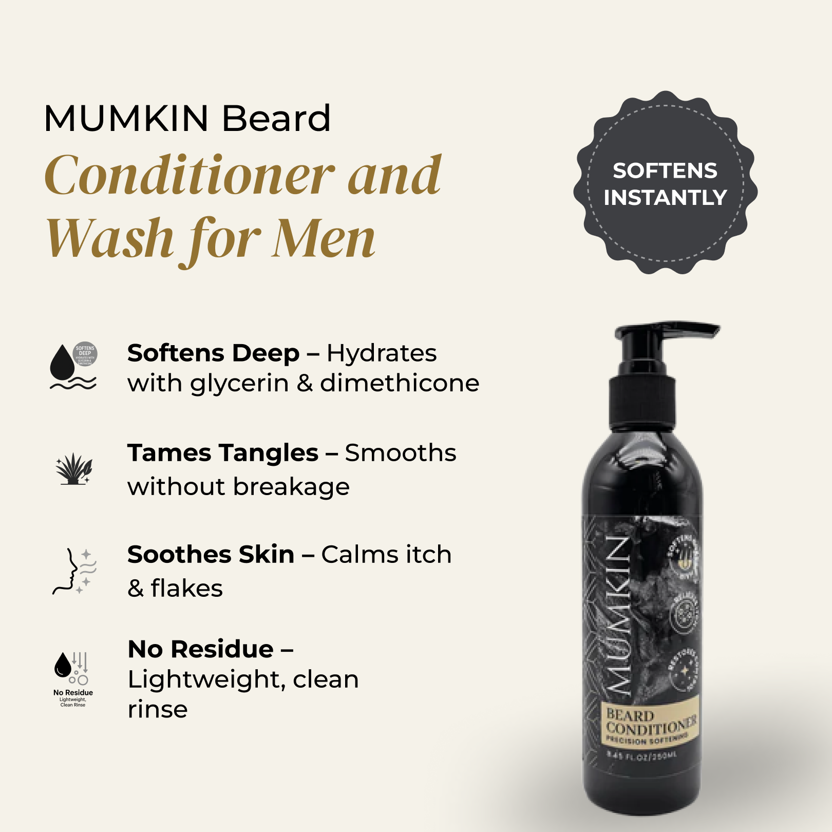 Condition and restore your beard with MUMKIN’s nourishing rinse-out beard conditioner. Formulated to deeply hydrate and soften your facial hair, it reduces frizz and split ends while supporting healthy skin beneath—leaving your beard smoother and easier to manage.