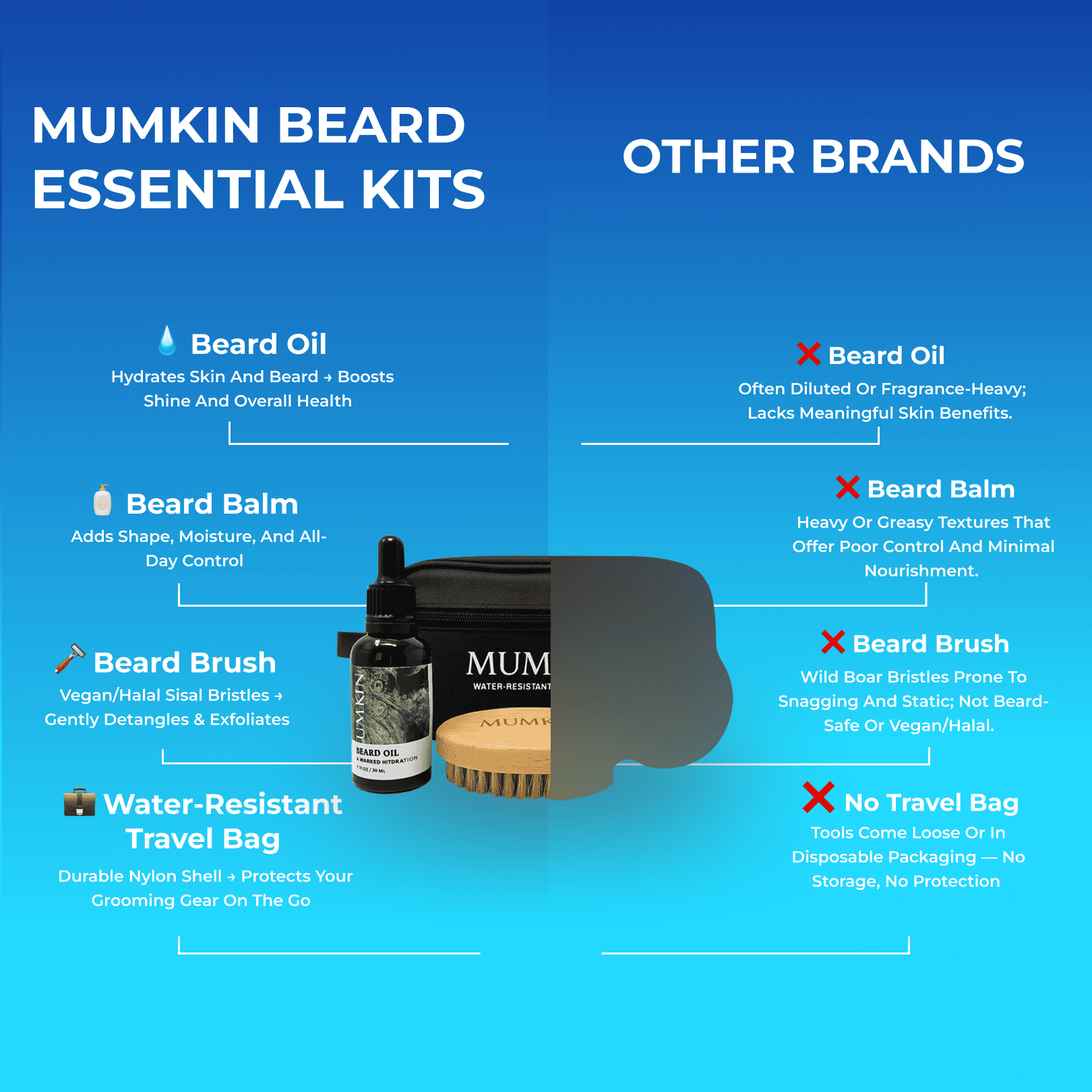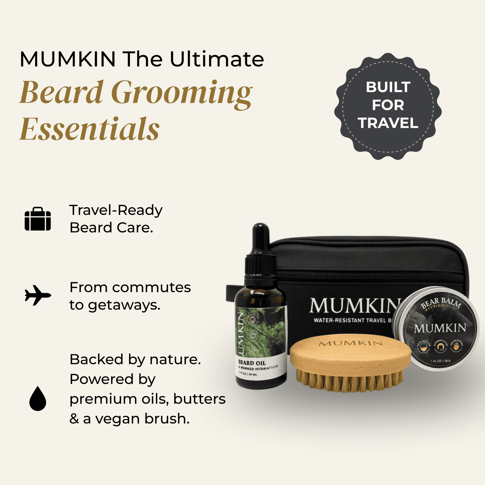 Packaged in a sleek, water-resistant MUMKIN travel bag — this kit travels as well as you do.