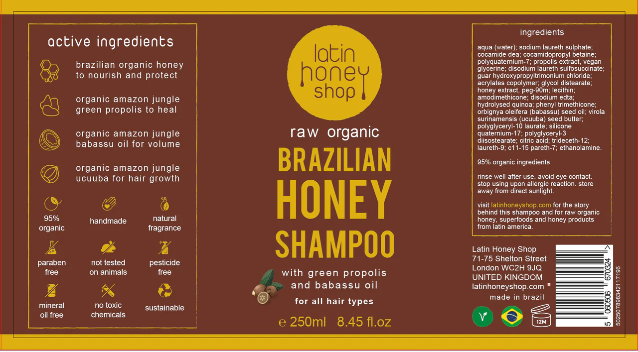 WHY IT STANDS OUT: Unlike other shampoos laden with harsh chemicals, Latin Honey Shop’s Raw Organic Brazilian Honey Shampoo is a fusion of nature’s purest ingredients, crafted with integrity and respect for the environment. Never tested on animals, it is free from harsh chemicals, parabens, and artificial fragrances, it is a truly luxurious, natural experience that outshines conventional shampoos in both results and ethical sourcing. Each bottle tells a story of rare forests, ancient beauty rituals, and a commitment to natural, luxurious hair care. Replenish, renew, and transform your hair with the richness of the Amazon with every wash.