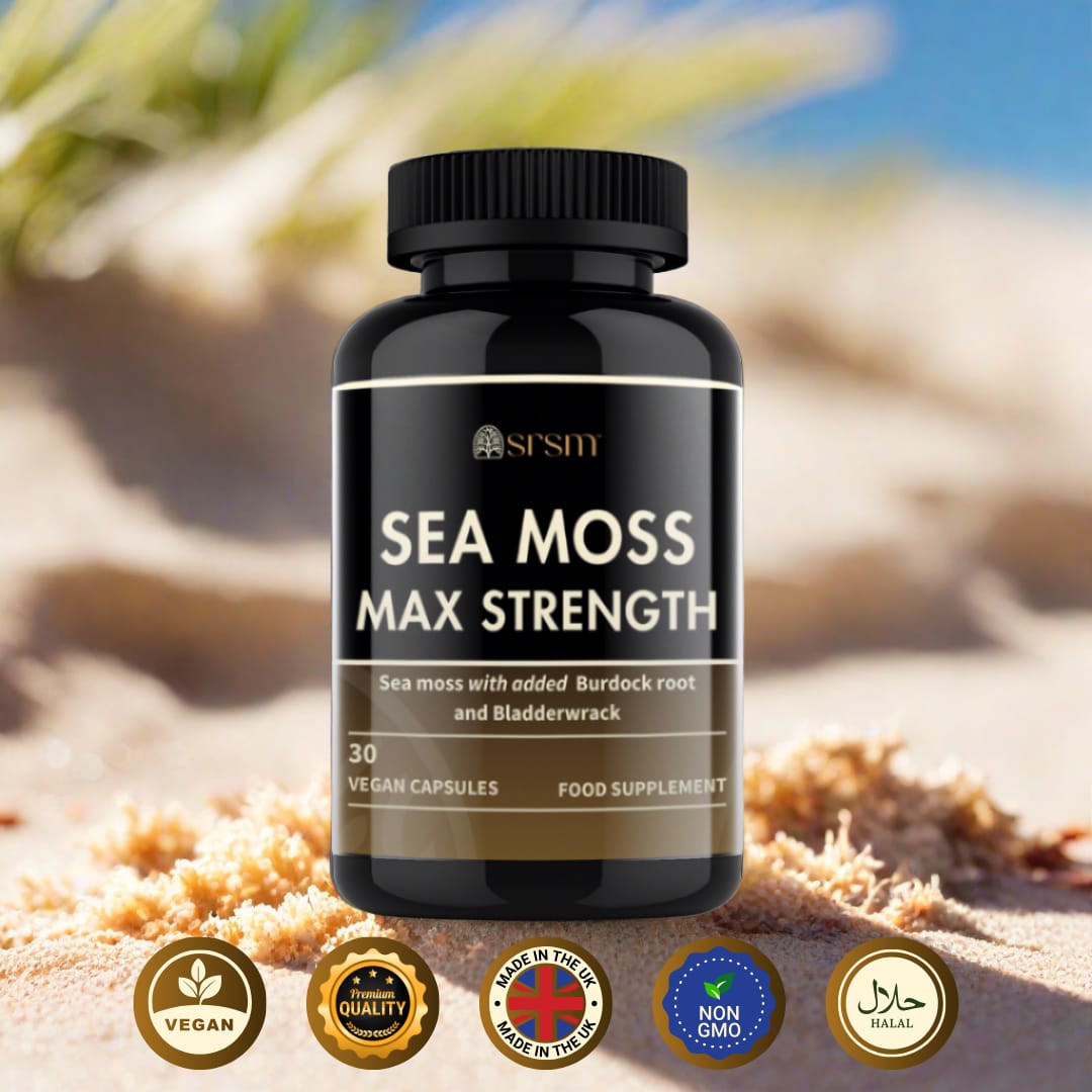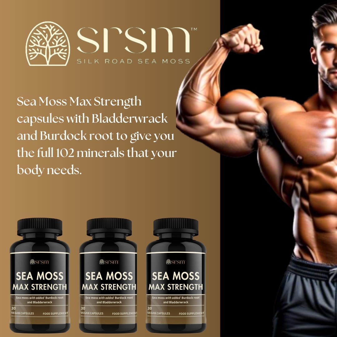 Unlock the ultimate in natural health supplementation with our Sea Moss Max Strength Capsules, a powerful blend of Sea Moss, Burdock Root, and Bladderwrack. This formidable trio not only delivers a complete spectrum of 102 essential minerals but also supports optimal health across various systems. These capsules enhance thyroid function, boost metabolism, and fortify the immune system. Perfect for those looking to naturally enrich their diet, they also promote skin health, improve digestion, and increase overall vitality. Embrace the power of the ocean and earth with every capsule.