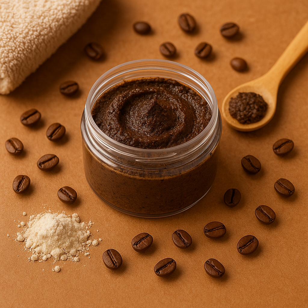 This handcrafted face scrub blends finely ground coffee with kaolin clay and nourishing oils to refresh and gently exfoliate your skin. Naturally aromatic, it’s scented with uplifting essential oils of sweet orange and lemongrass—no artificial fragrances.