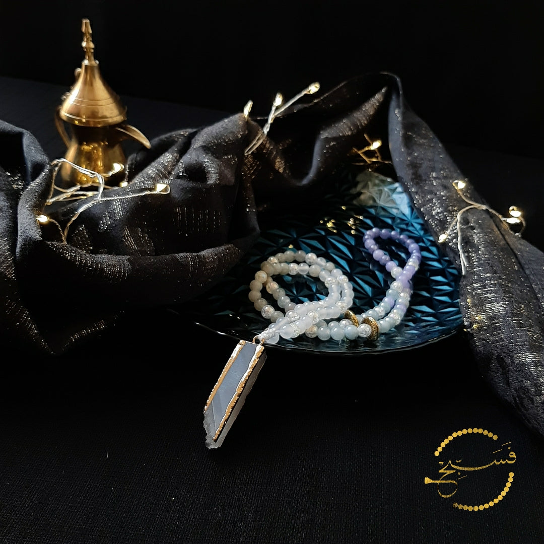 The ombre shades in this tasbih have been created with a mix of agate and natural stone beads.