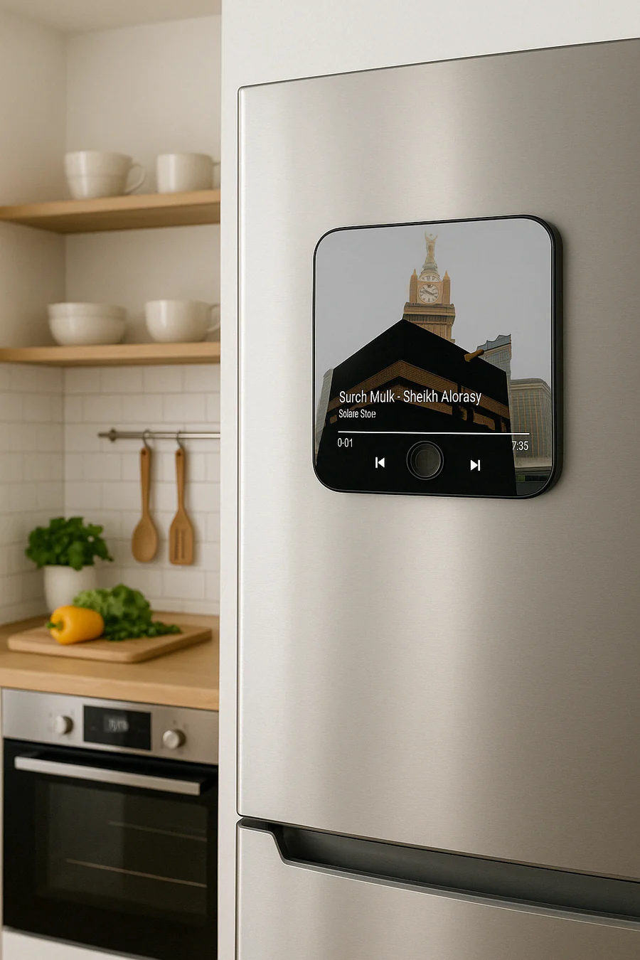 Experience the beauty and blessings of the Quran with the Quran Magnet, a stylish fridge magnet and Surah player in one. Compact and portable, it's a perfect way to incorporate daily recitation, teach children, or set a peaceful atmosphere at home. Built with a preloaded Surah player, simply touch the button to listen and be magnetized by the words of Allah. The Quran Magnet makes the perfect gift for Muslims.