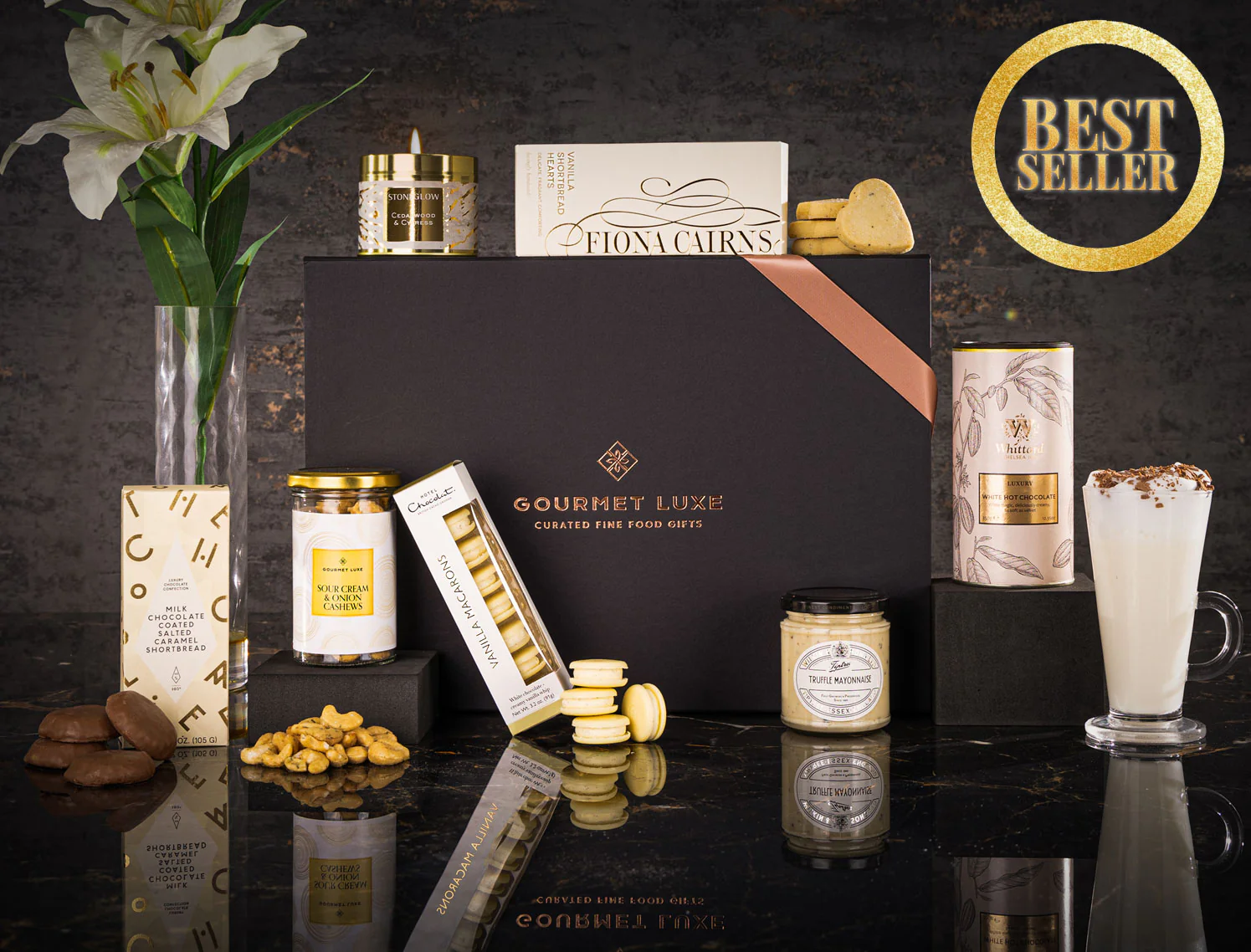 Celebrate Ramadan and Eid with a luxurious Ramadan & Eid Gift Hamper, thoughtfully curated to make your Iftaars or Eid celebrations truly special. Indulge in a dreamy selection of gourmet treats, including rich luxury white hot chocolate, indulgent salted caramel shortbread, vanilla macarons, and sour cream & onion cashews. Adding a touch of elegance, this hamper also features Tiptree truffle mayonnaise and a soothing cedarwood & cypress candle, creating a perfect blend of indulgence and sophistication.