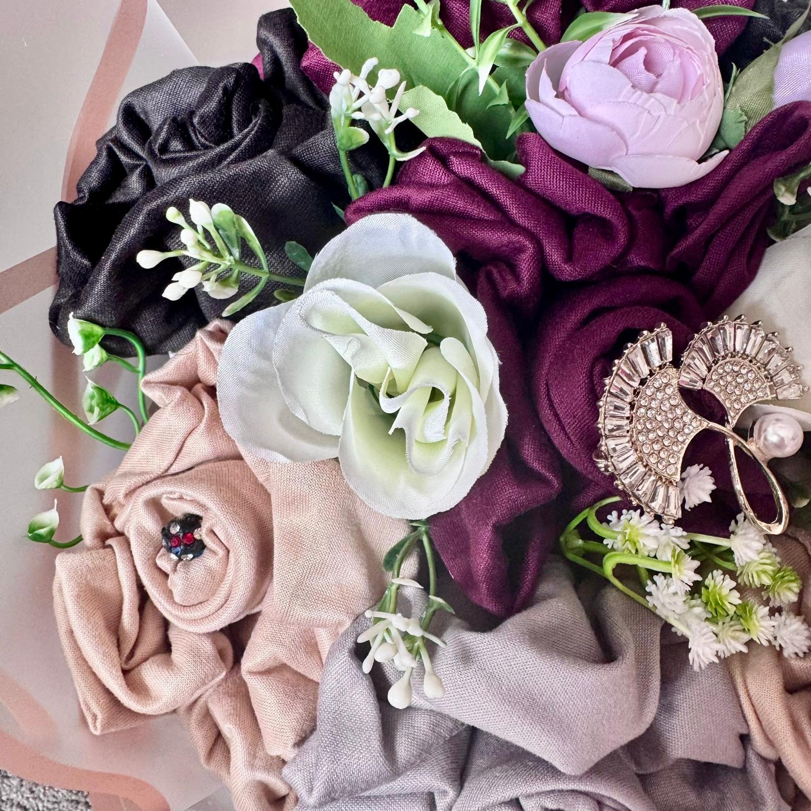 A unique gift that beautifully combines practicality and elegance. This bouquet features four premium jersey hijabs, carefully wrapped to resemble a stunning floral arrangement. Crafted from soft, breathable, and stretchy fabric, these hijabs provide effortless comfort and drape, making them ideal for everyday wear without the need for pins. Thoughtful and versatile, this hijab bouquet is perfect for showing love, appreciation, or simply bringing a touch of beauty and warmth to someone’s day.