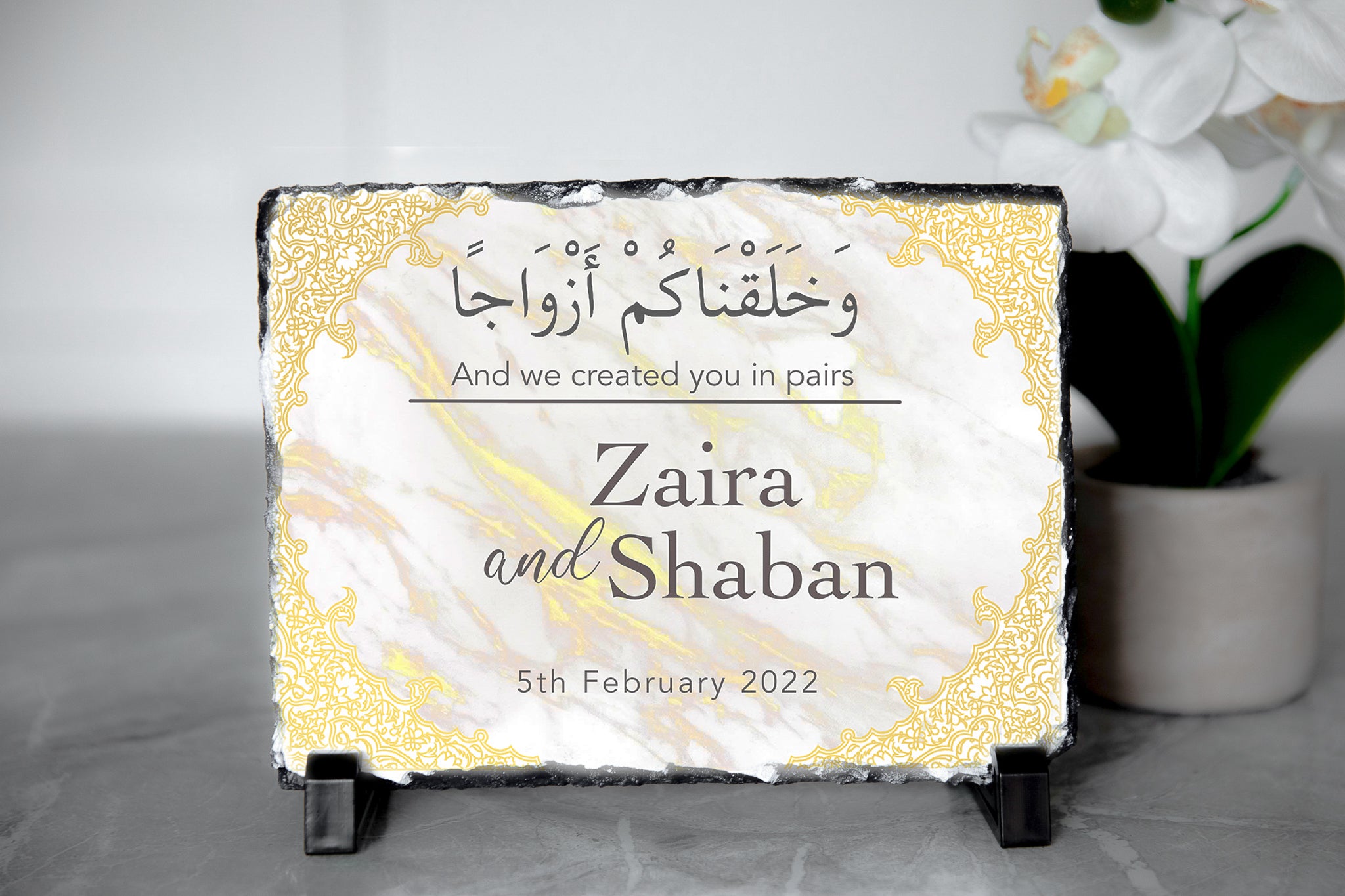 Gold Marble Calligraphy Rock Slate Gift with 'We created you in pairs"