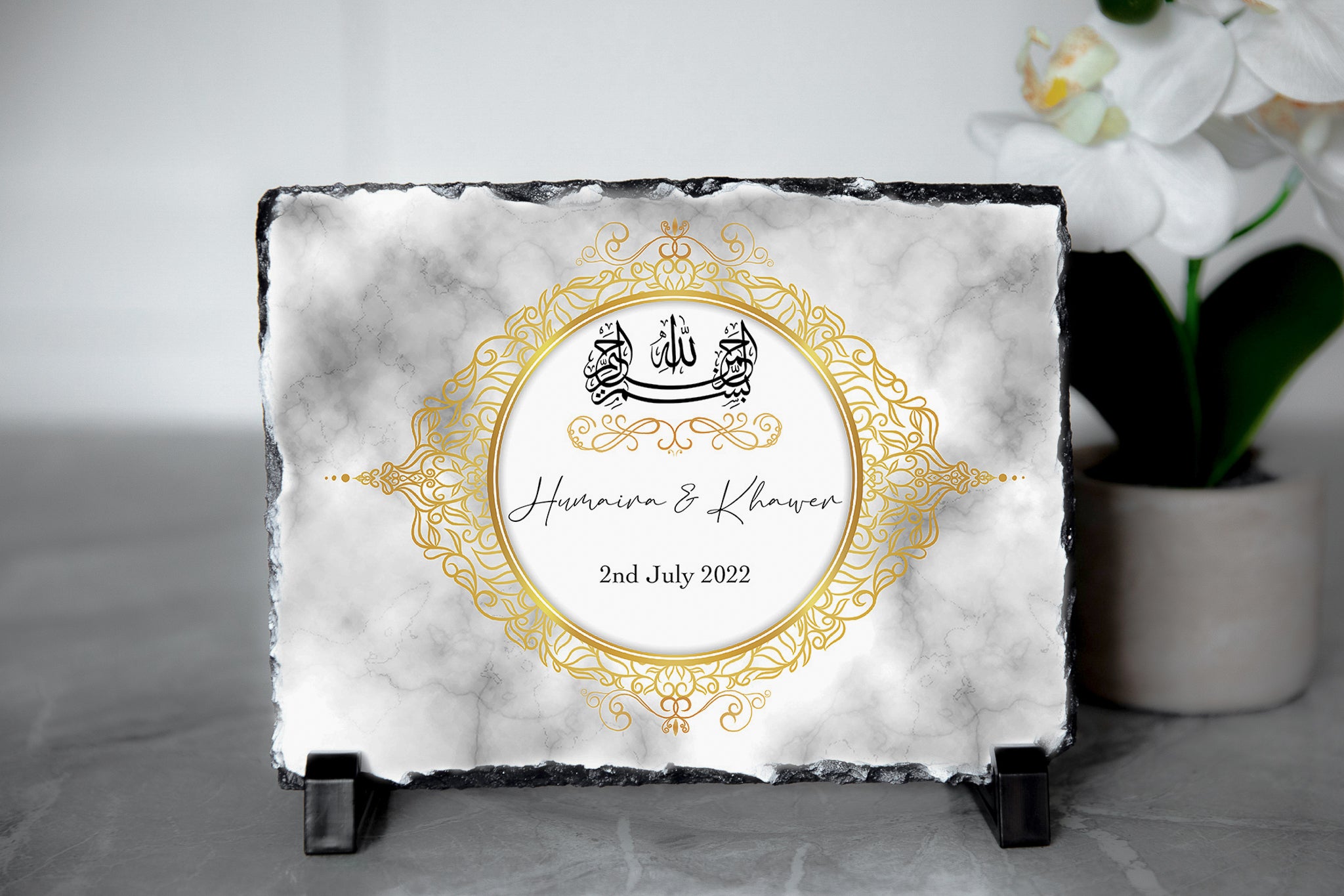 Our Personalised Ornate Bismillah Calligraphy Rock Slate Gift with grey marble effect