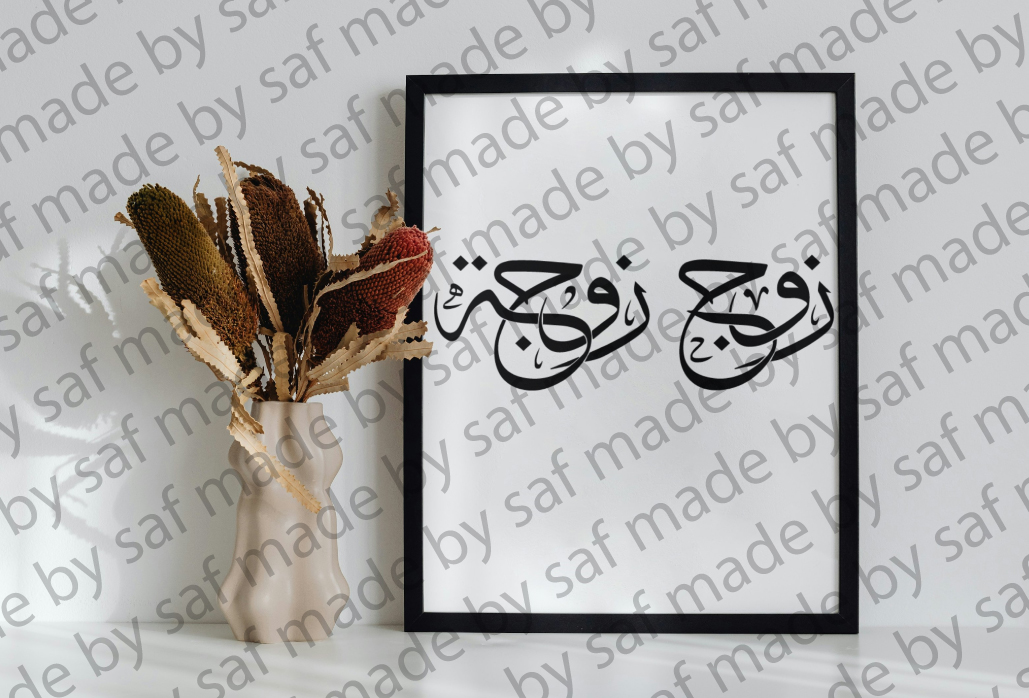 Elegant Arabic calligraphy design of Zawj (husband) and Zawja (wife).