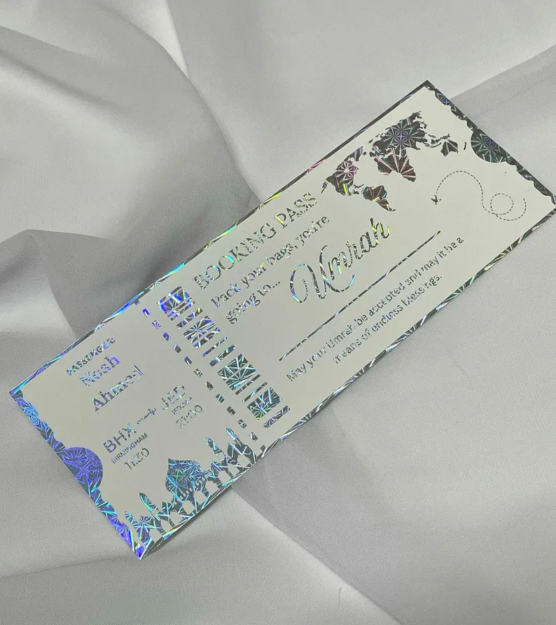 Fully personalised with: - Passenger Name - Departure and Destination Airport - Custom Message - Foil Colour