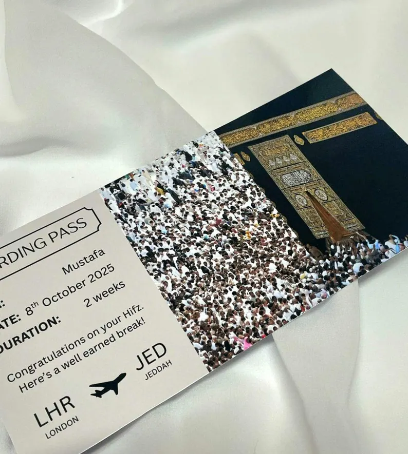 Perfect For: - Hajj or Umrah surprise reveal - Eid, Ramadan, or Nikkah gifts - Islamic wedding gift or anniversary surprise - Travel gift experience voucher