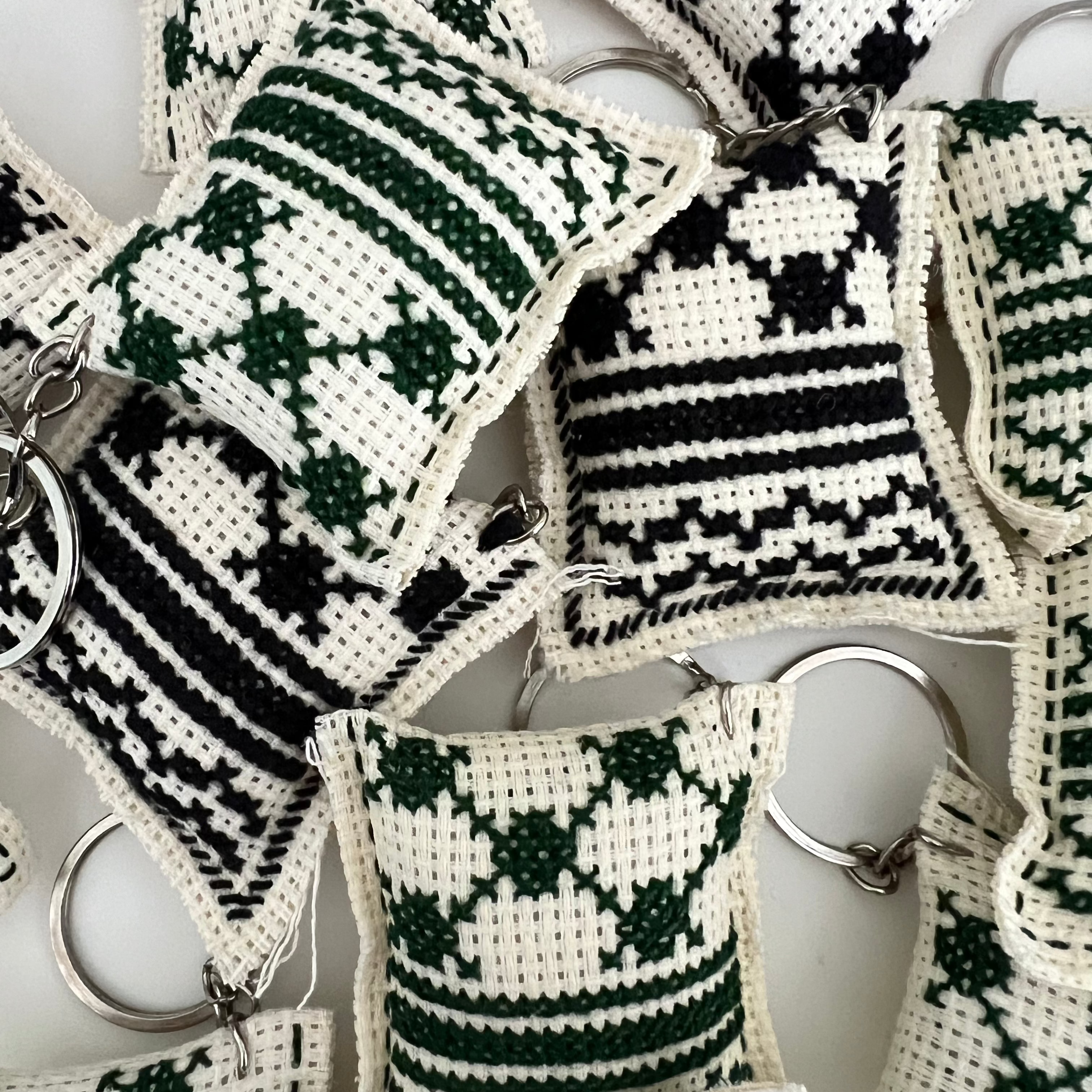 A symbol you can carry. Handcrafted in Palestine, each keyring is wrapped in the unmistakable keffiyeh pattern – a reminder of resilience, identity, and heritage.