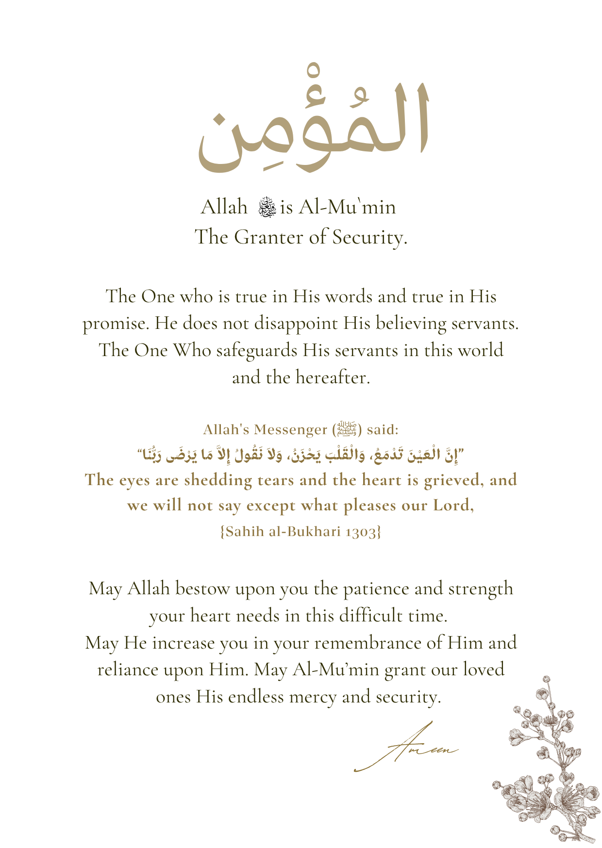 Islamic Condolence Card – Inna Lillahi | Al-Mu’min (The Granter of Security)