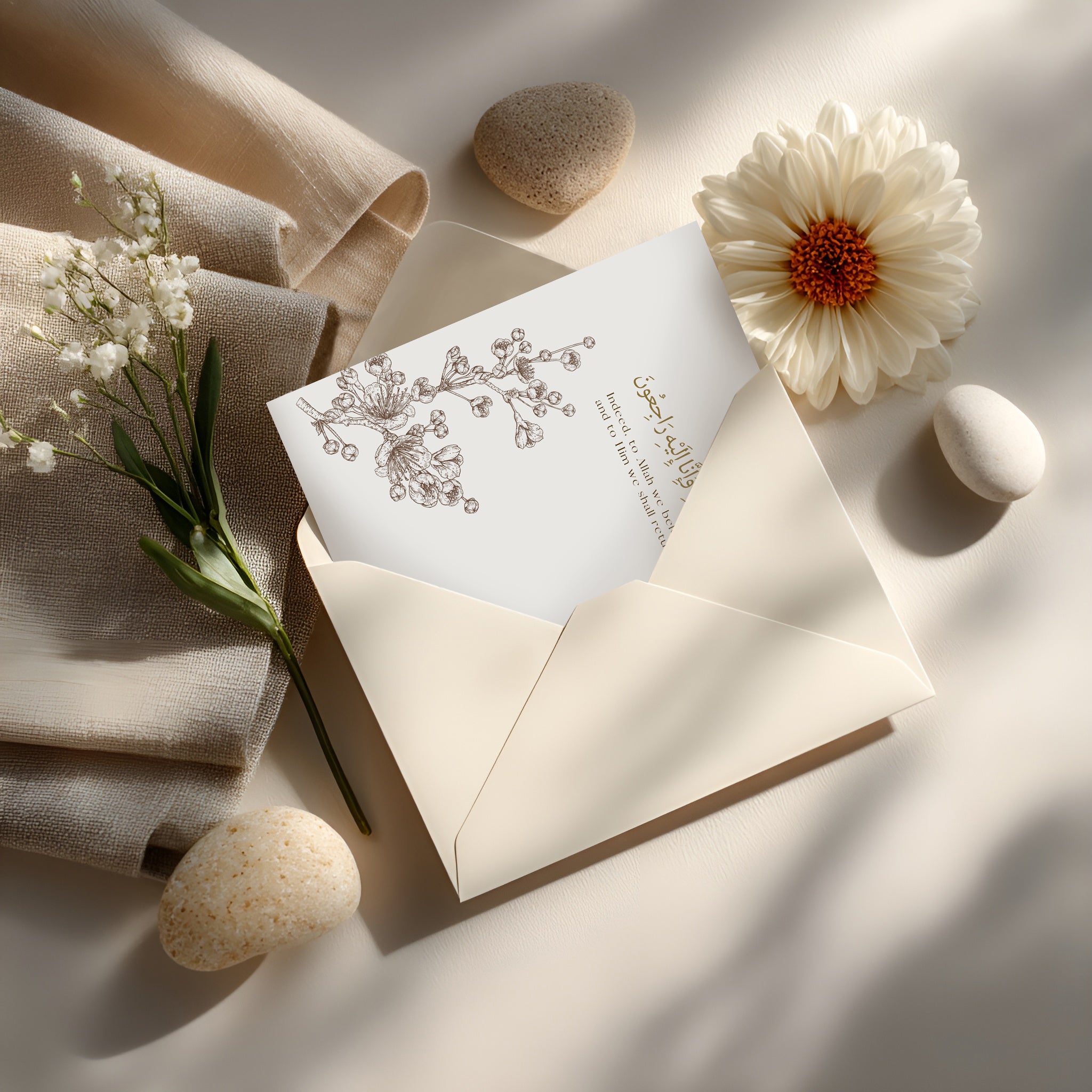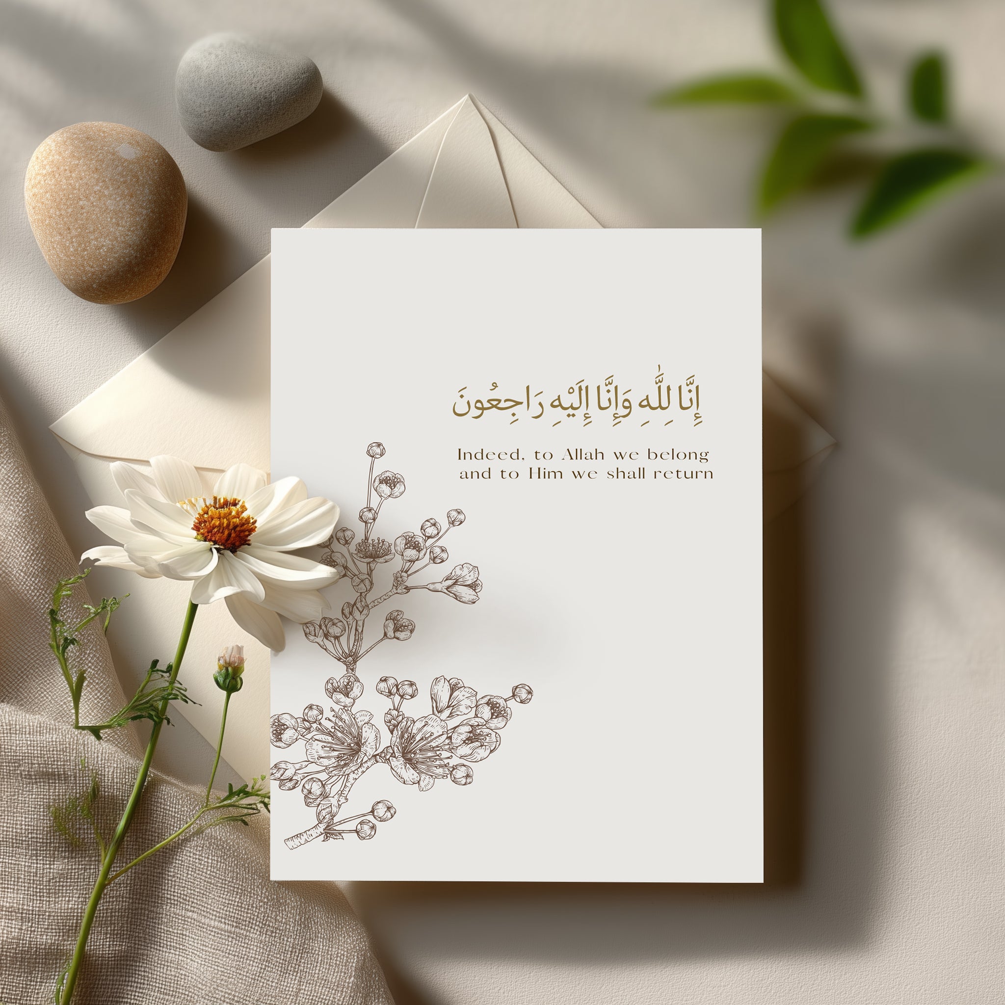 Offer comfort through faith with this elegant bereavement card. A timeless design paired with sacred words from the Qur’an and Sunnah, reminding the grieving heart of Allah’s mercy, protection, and eternal promise.