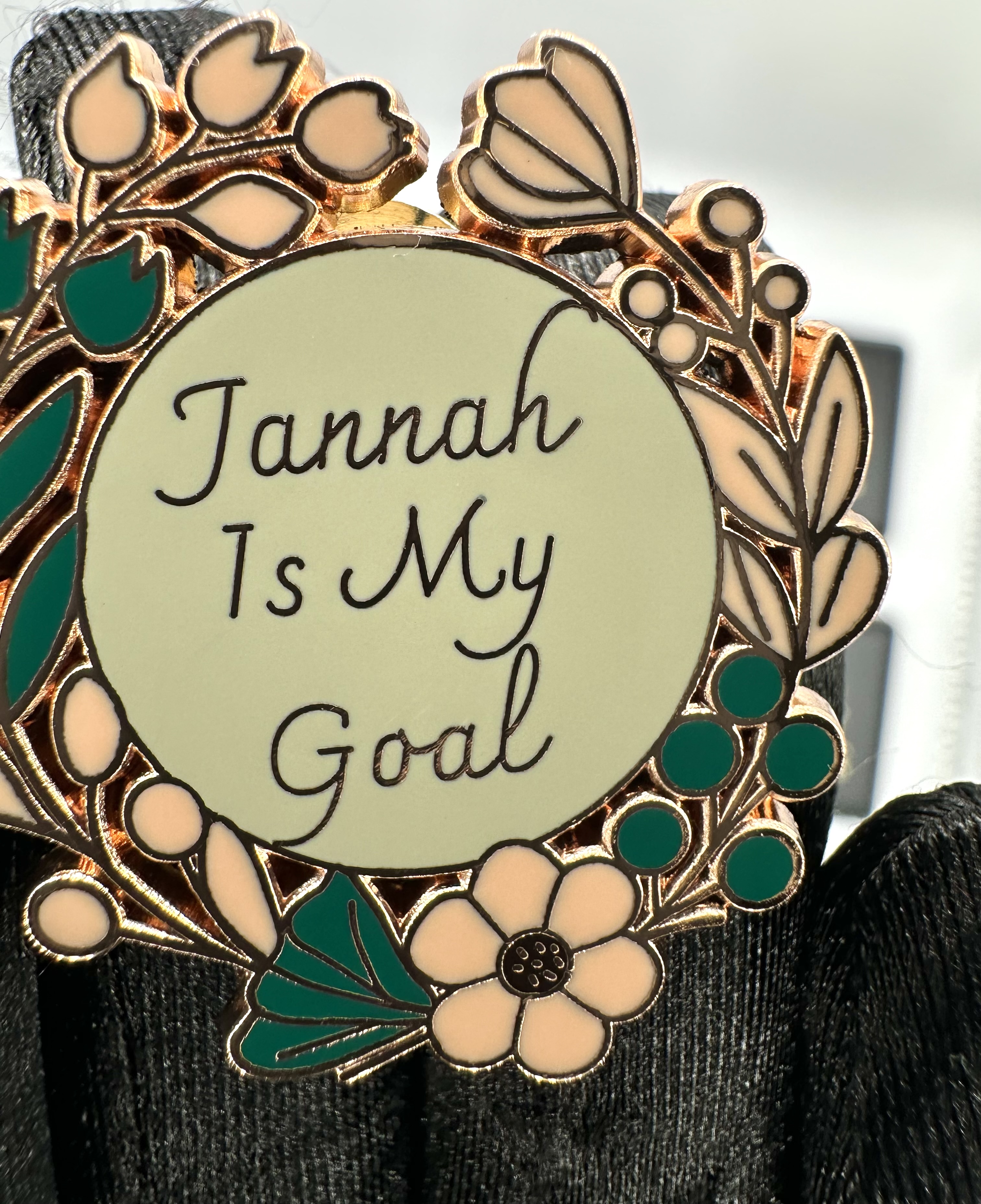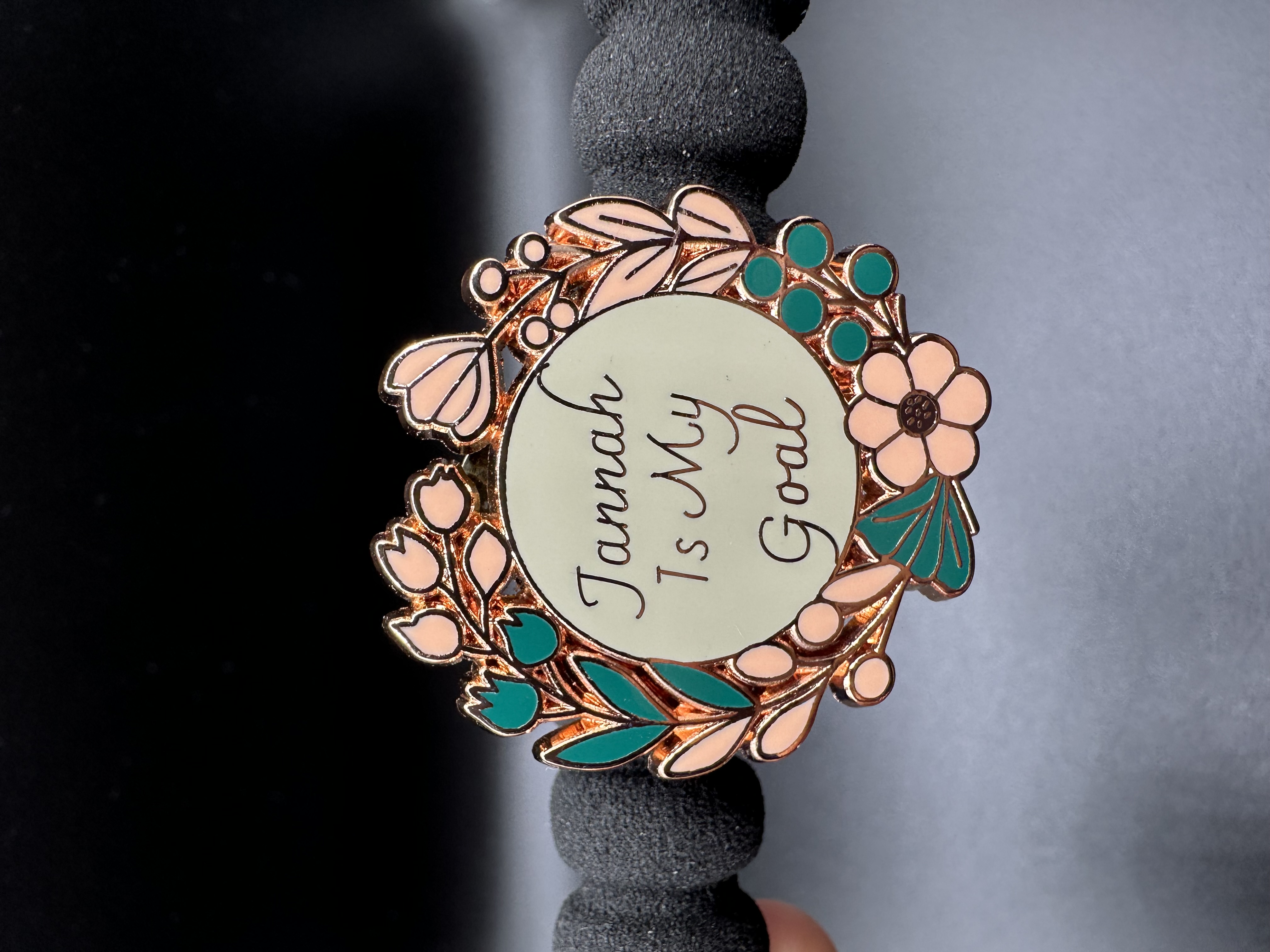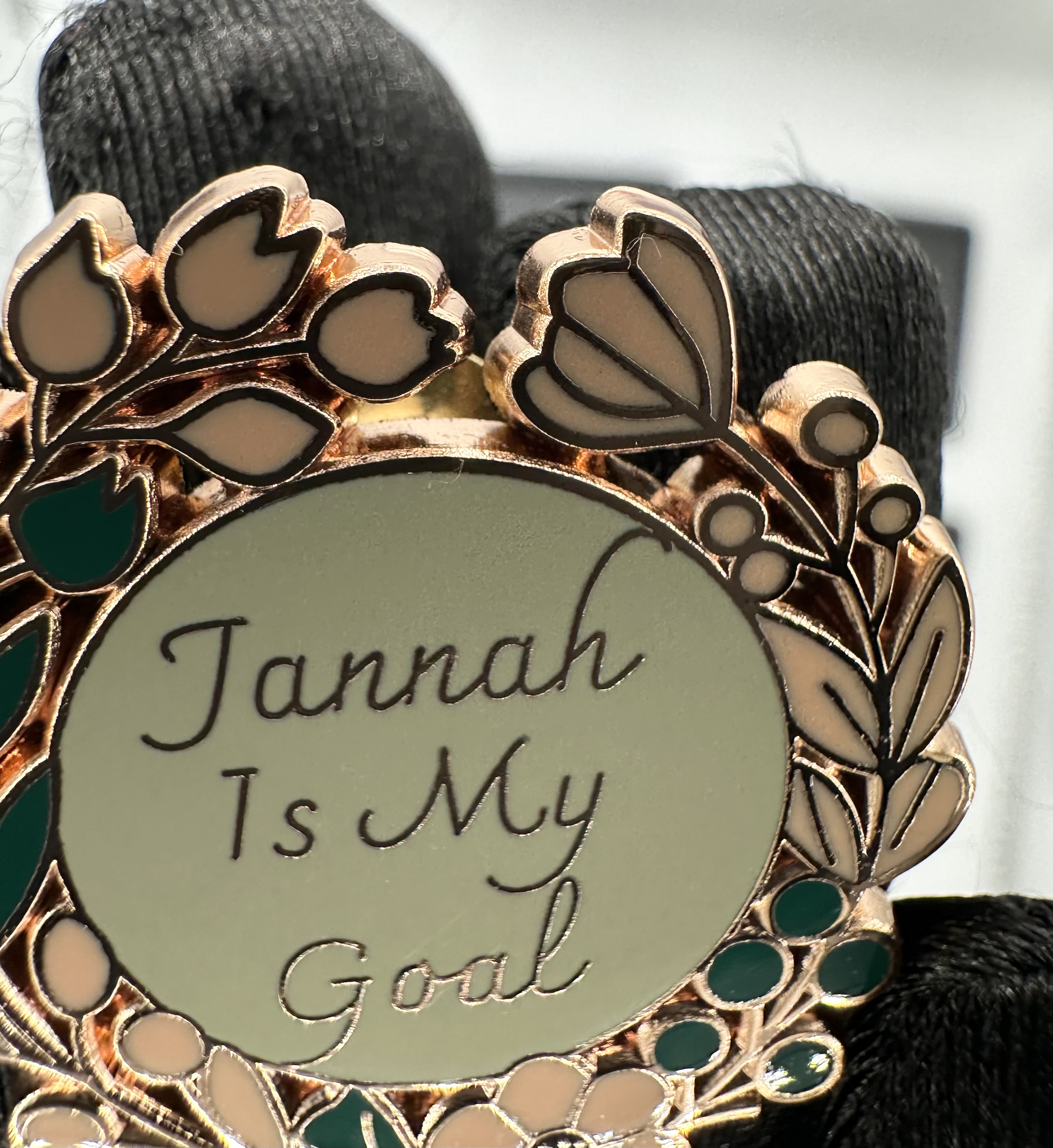 Carry a daily reminder of your purpose with this beautifully crafted enamel pin featuring the heartfelt phrase: “Jannah Is My Goal.”