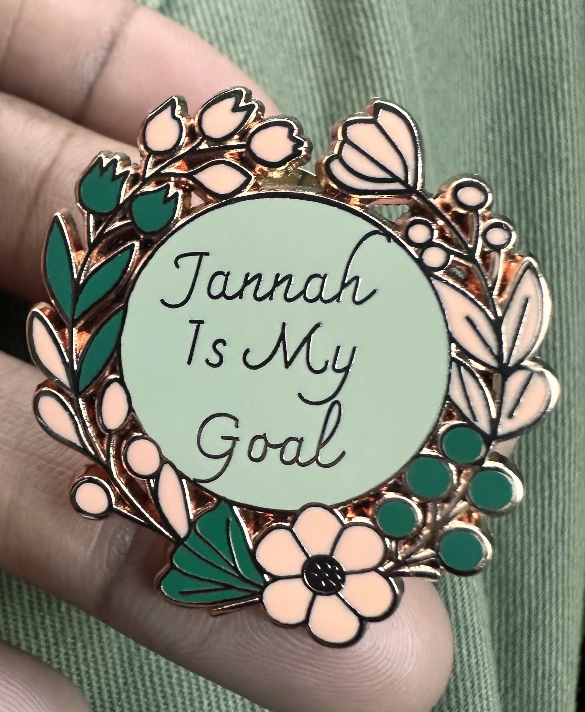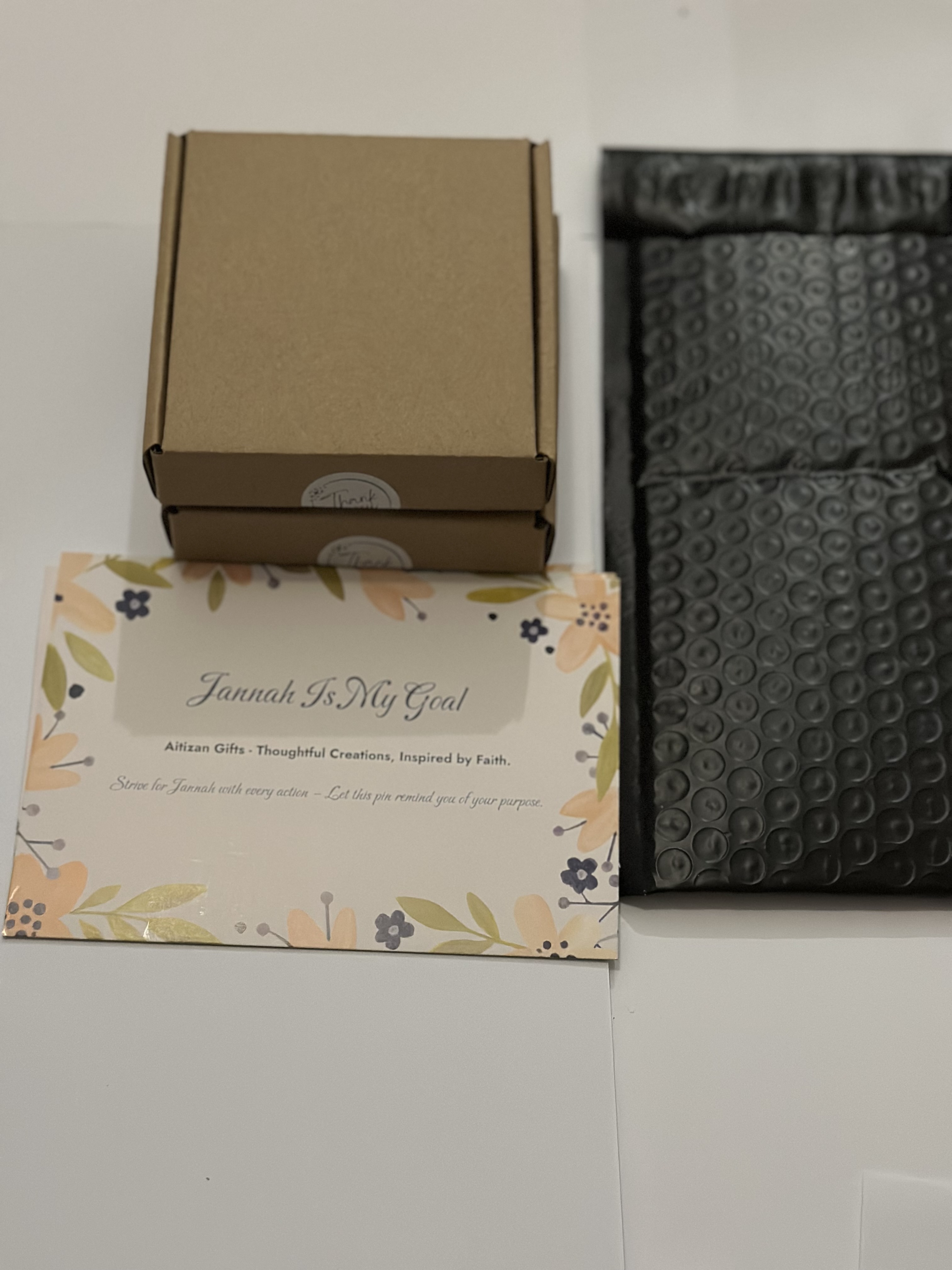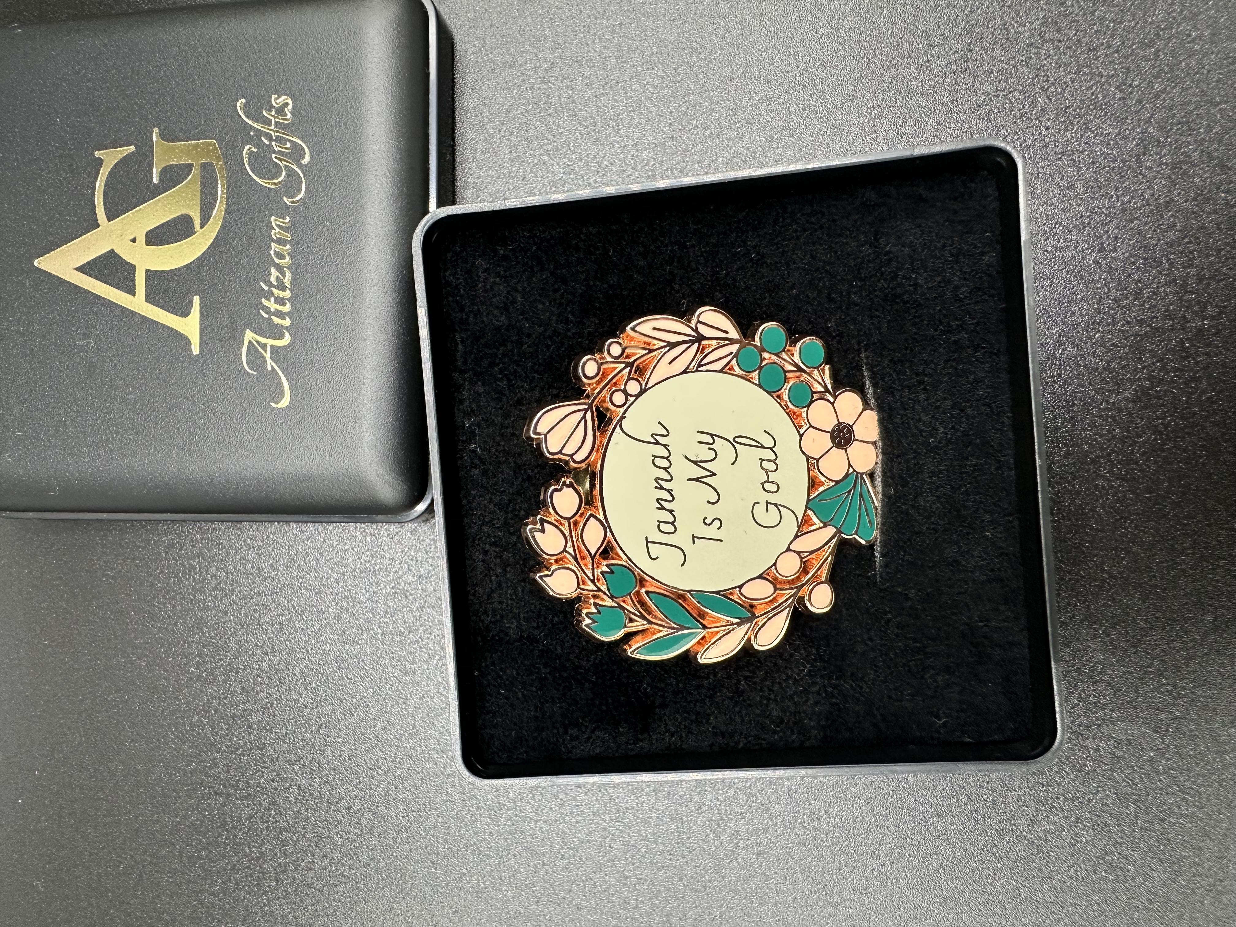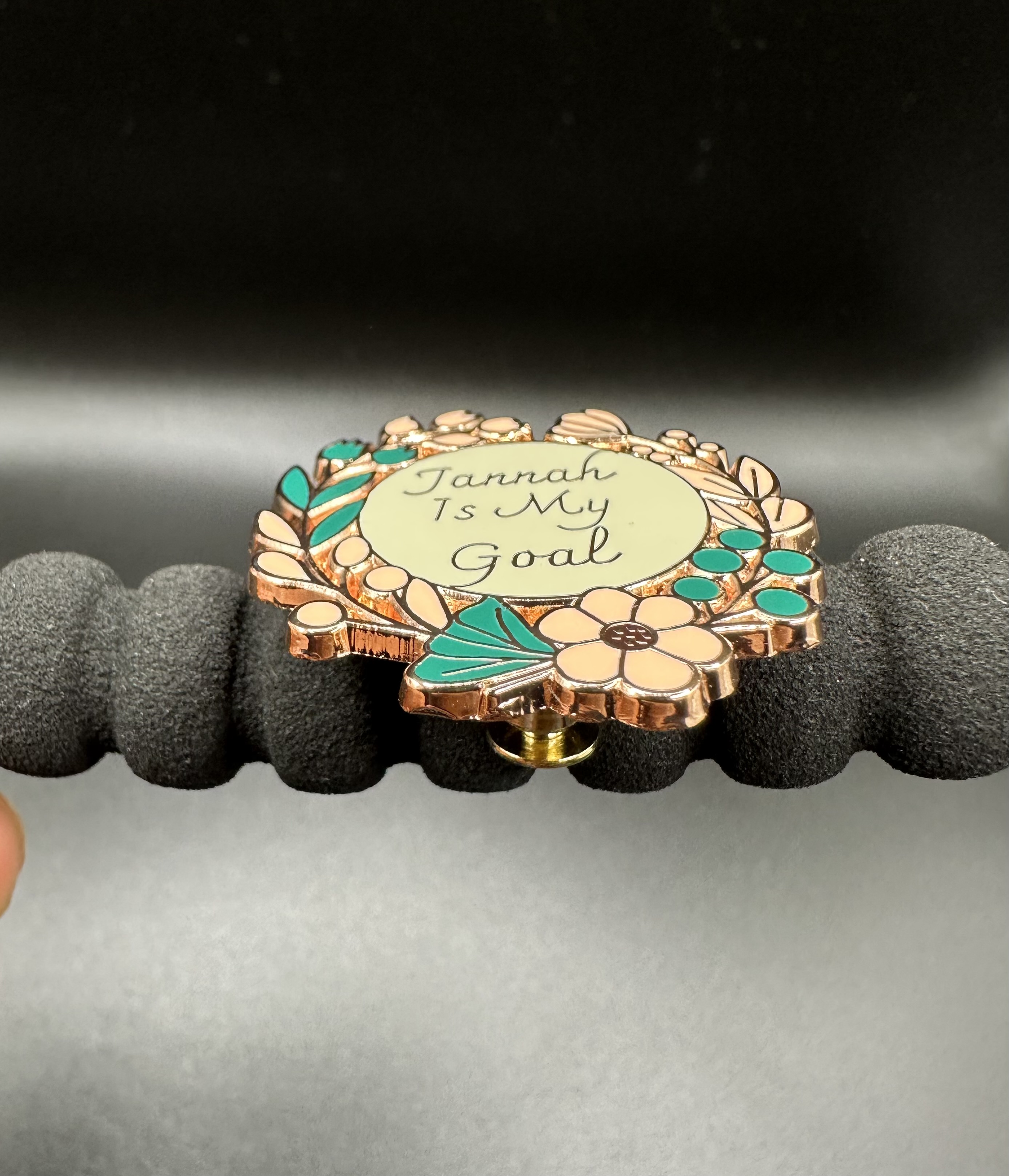 Carry a daily reminder of your purpose with this beautifully crafted enamel pin featuring the heartfelt phrase: “Jannah Is My Goal.”