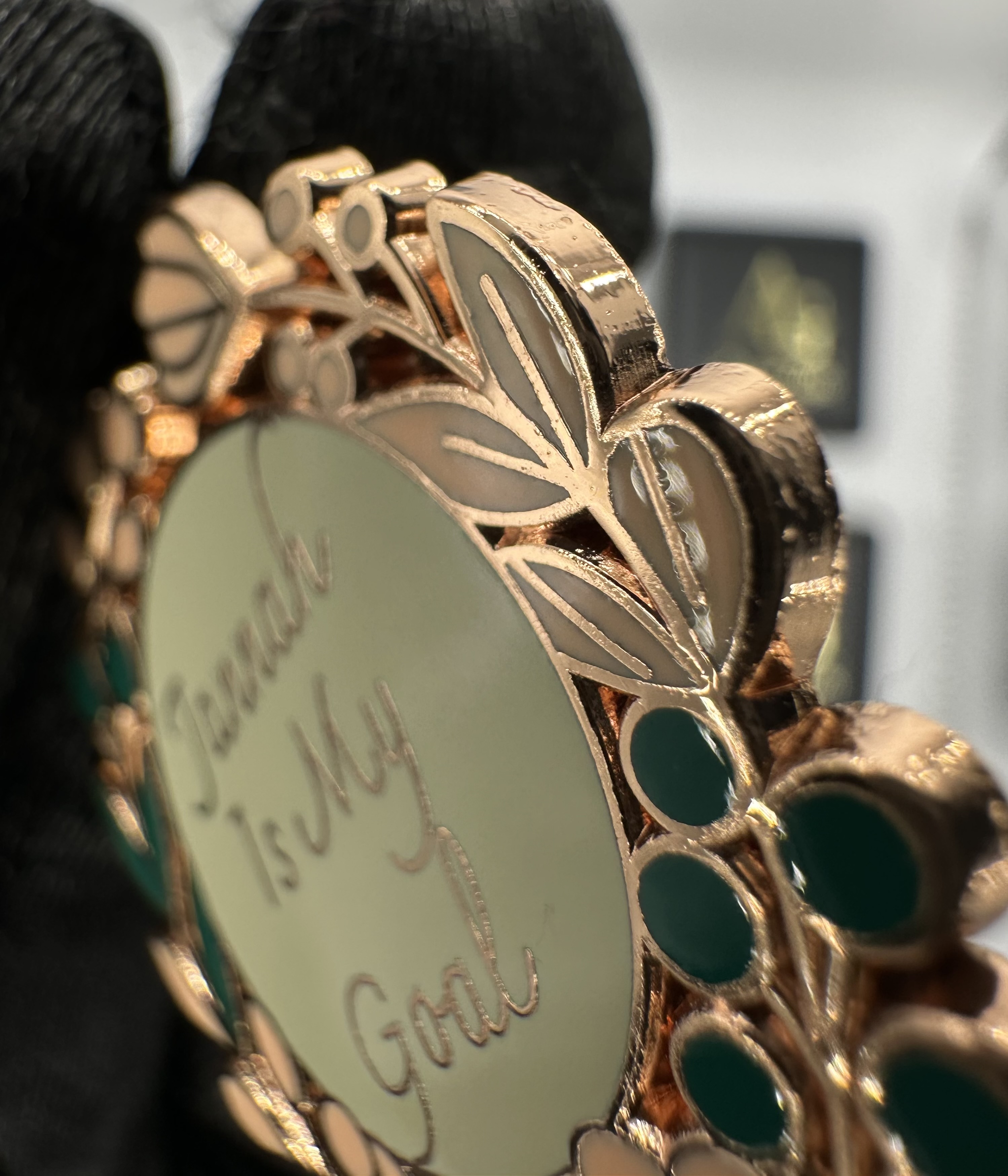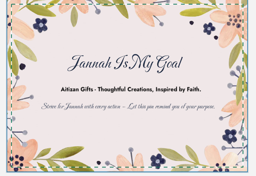 Delicately framed with rose gold and soft floral detailing in serene green and blush tones, this pin blends elegance with intention. Whether worn on your jacket, tote, abaya, or displayed on your desk, it’s a meaningful keepsake for anyone striving for the ultimate destination—Jannah.