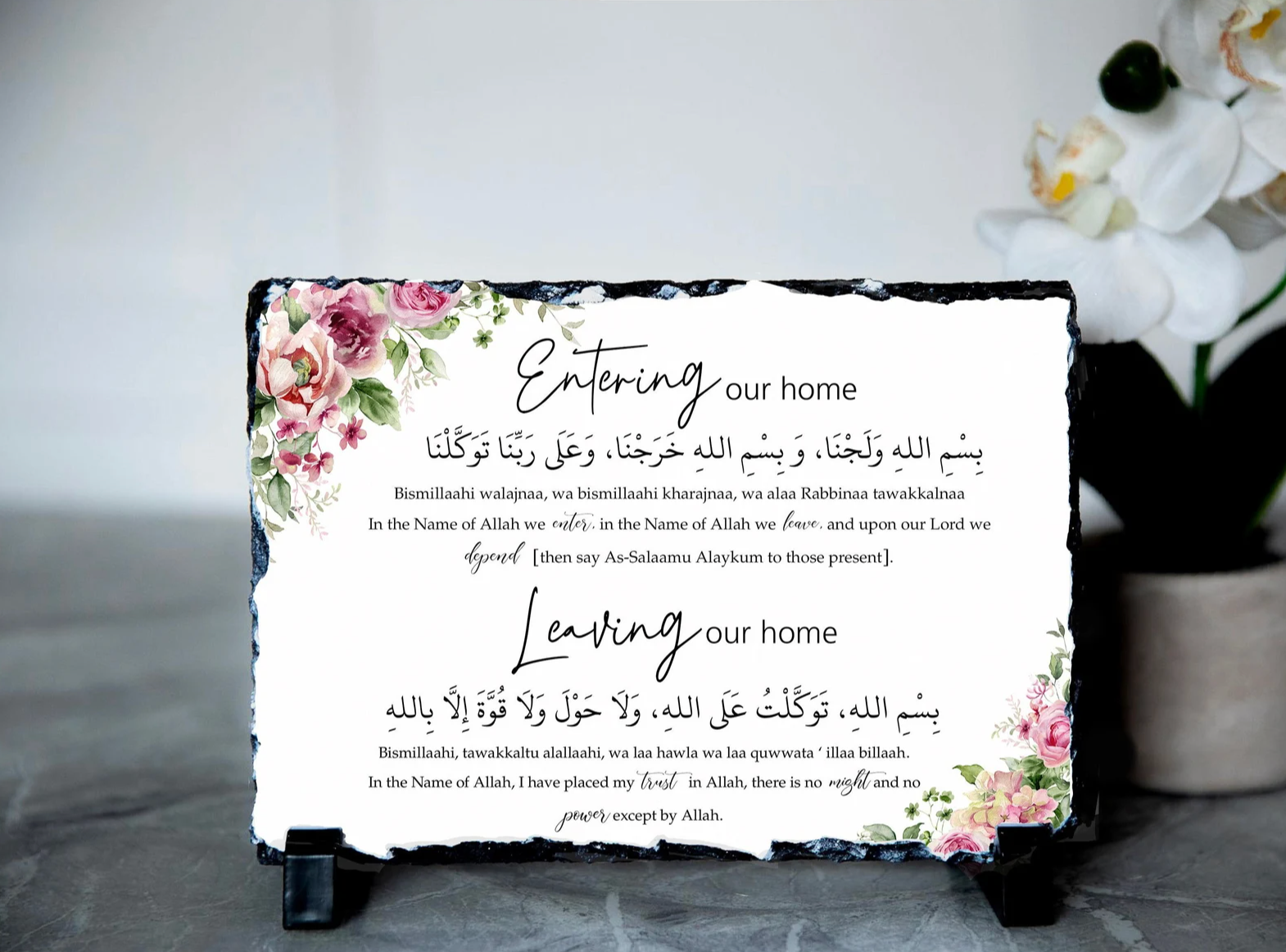 Our Unique Rock Slate Frame with Duas is a Beautiful Home Decor. This will surely bring many blessings to your home as it brings a reminder to those entering or leaving the home to read the Duas. It is a great gift for new home owners, newly wed couples and many more.