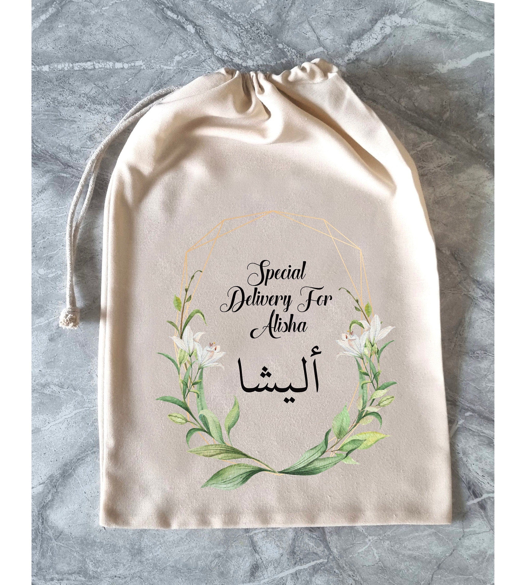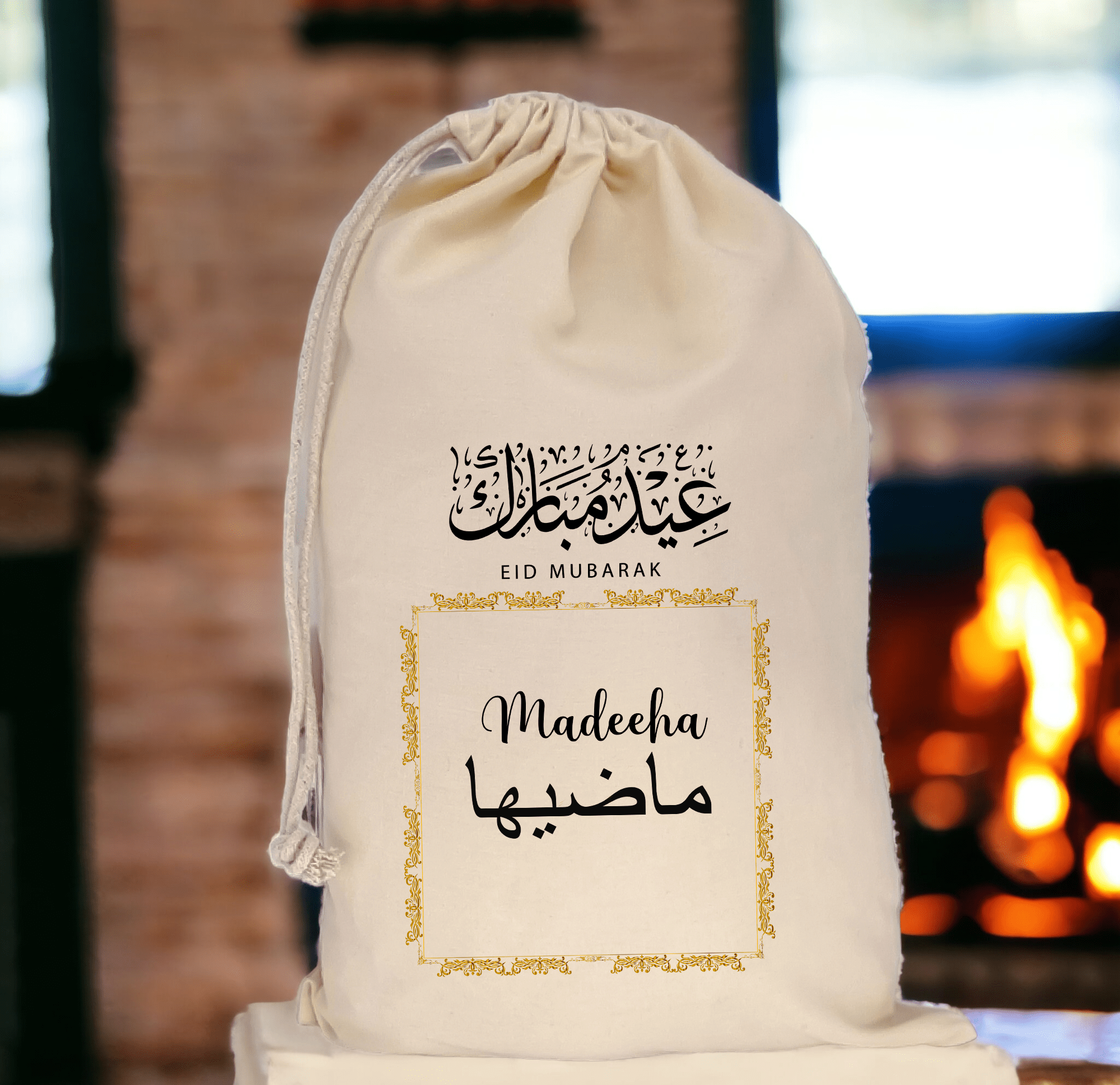 Personalised Eid Mubarak Drawstring Sack with Arabic Name