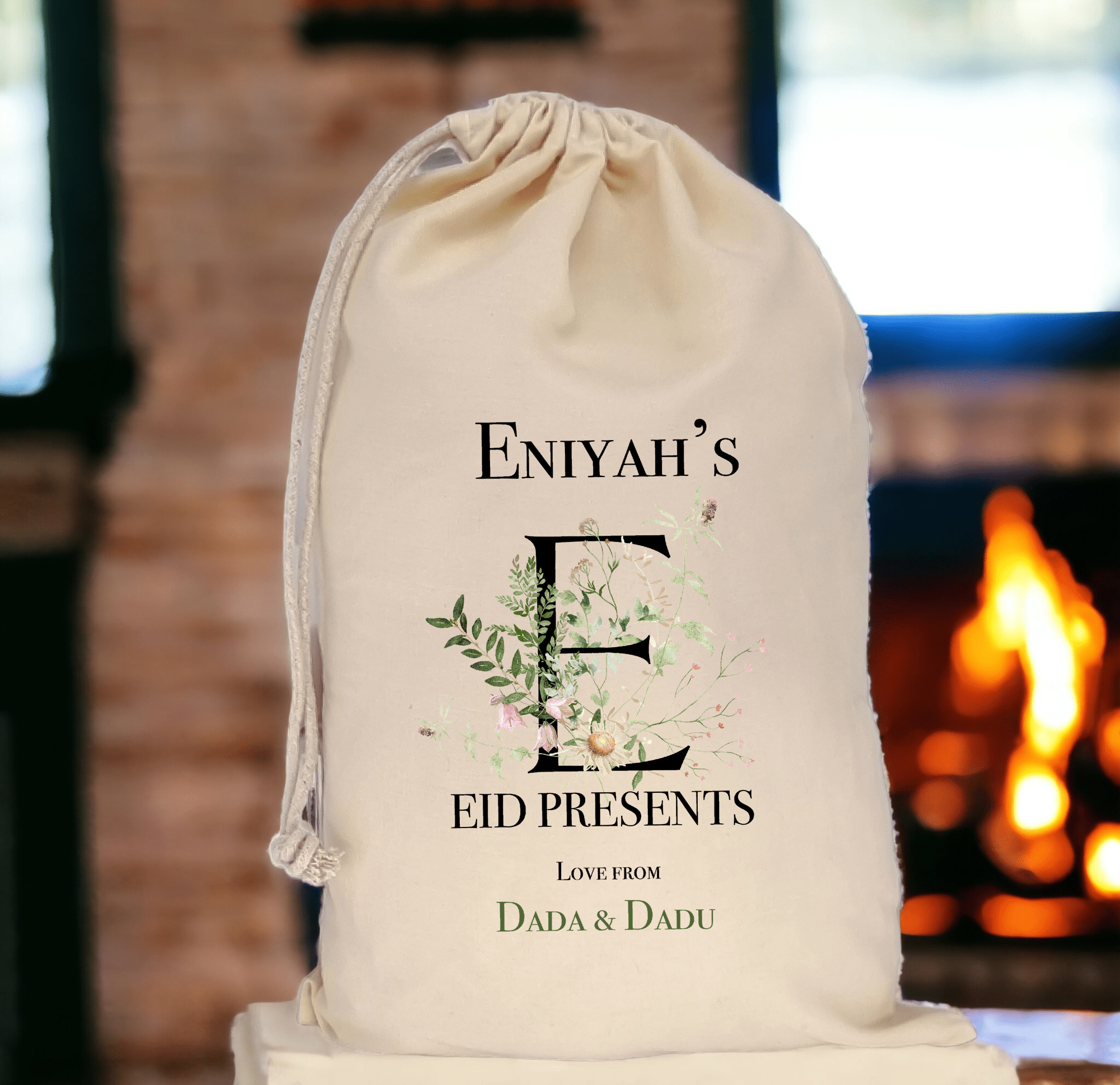 Personalised Alphabet Name Eid Present Drawstring Sack with Name
