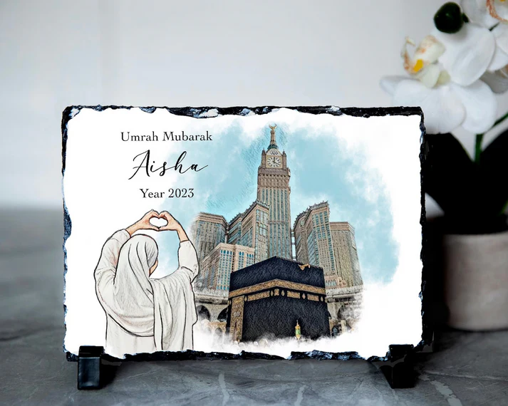 NEW Our Personalised Umrah or Hajj Mubarak Rock Slate Gift with Kaabah Art effect for HER only